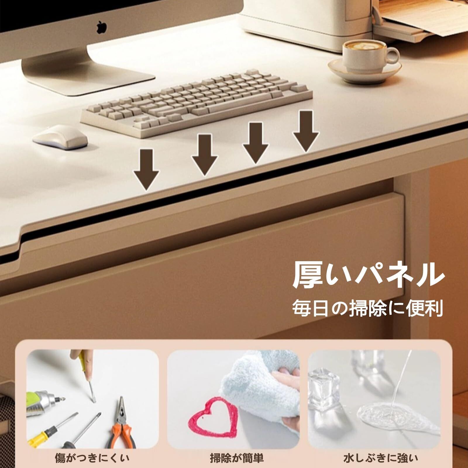 人間工学に基づいた凹型弧: テーブルの片側は人体工学の凹型弧設計を採用で、通常のストレート設計よりあらゆる種類の座っている姿勢に適しており。また、デスクトップの四隅は丸みのあるデザインで、お年寄りや子供がいても安心して使えます!