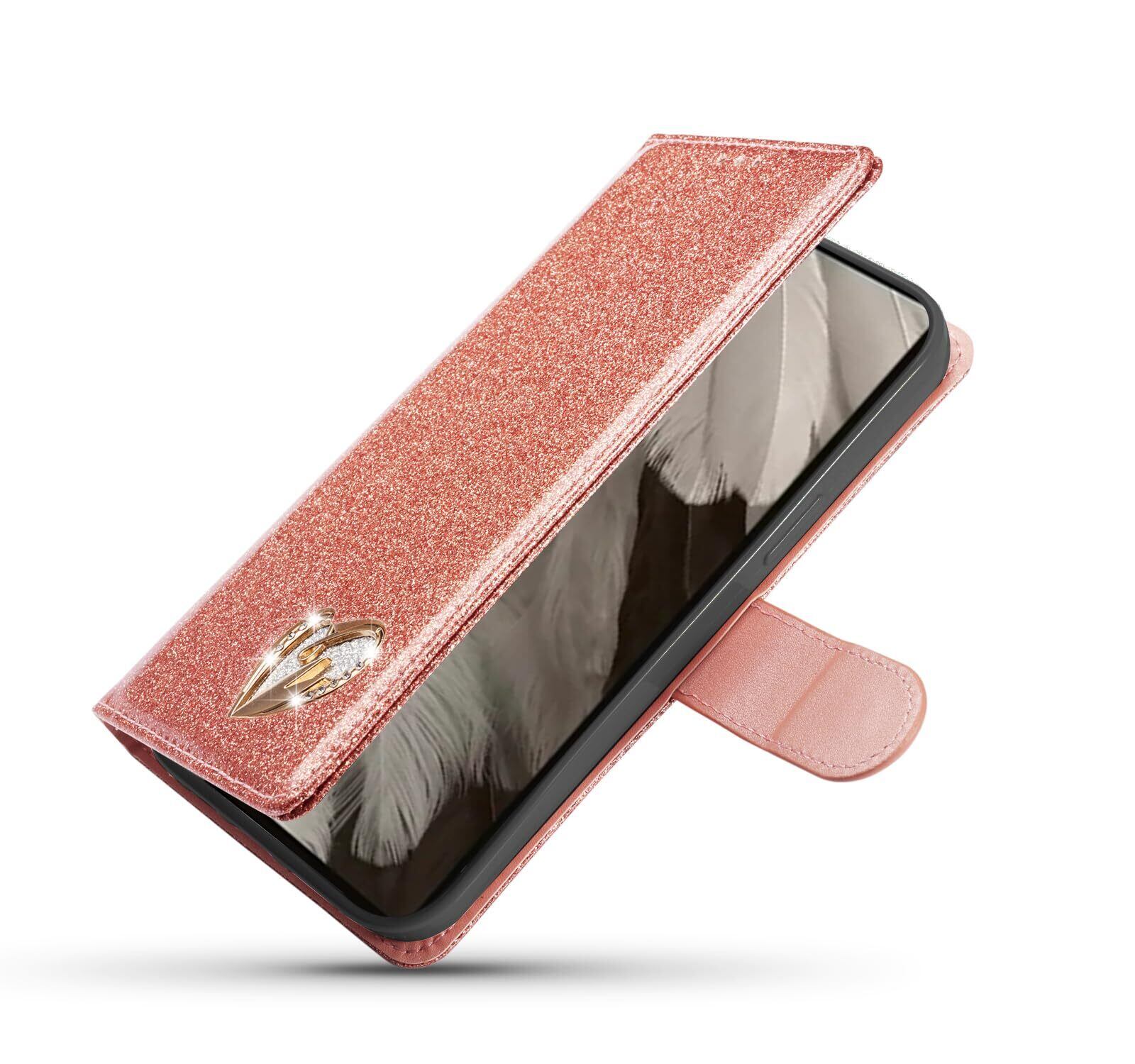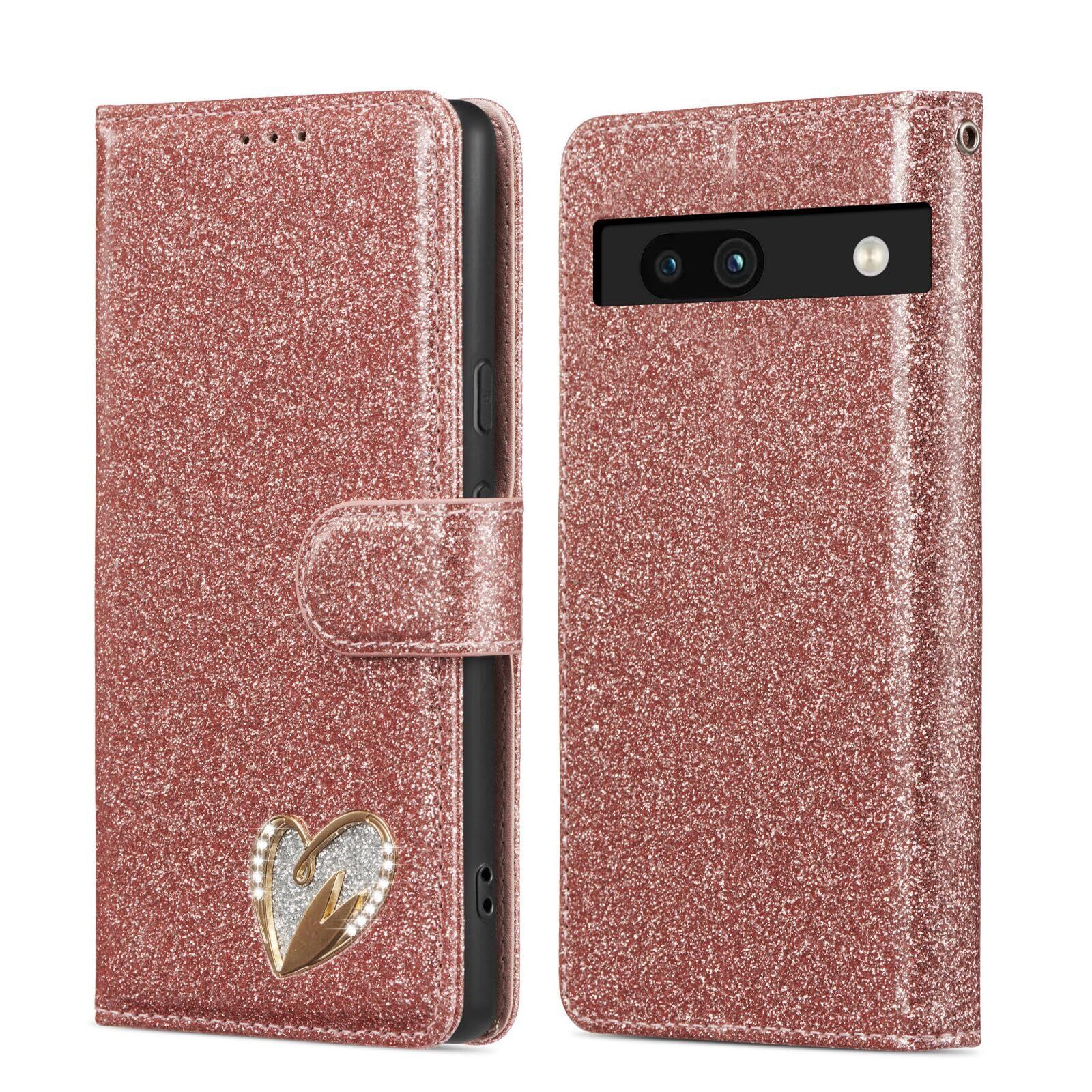 Google Pixel 7A ケース 手帳型 グーグル ピクセル7a ケース 手帳型 人気 おしゃれ Pixel 7a 携帯カバー 高級PUレザー 全面保護 Pixel 7A 手帳型 ケース ラブハート柄 ピクセル 7a 手帳ケース カバー 便利 ぴくせる7a 手帳型ケース 財布型 カード収納 マグネット式 スタンド機能 薄型耐衝撃(6.1インチ対応)ローズゴールド