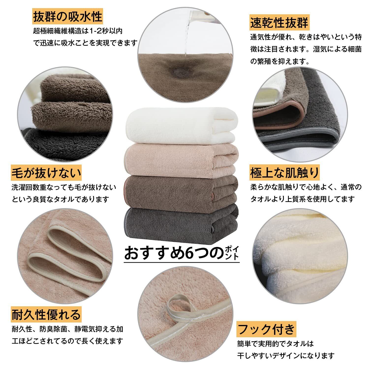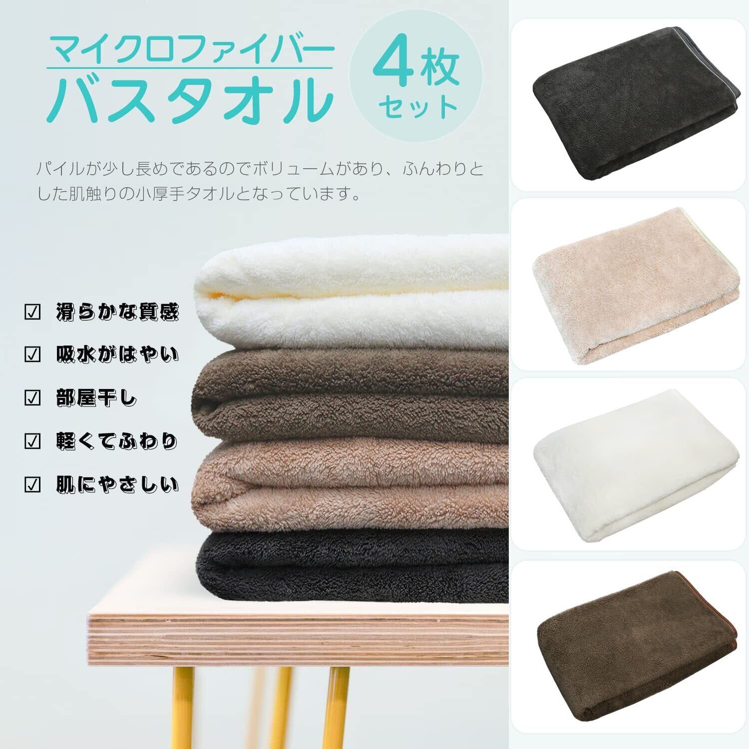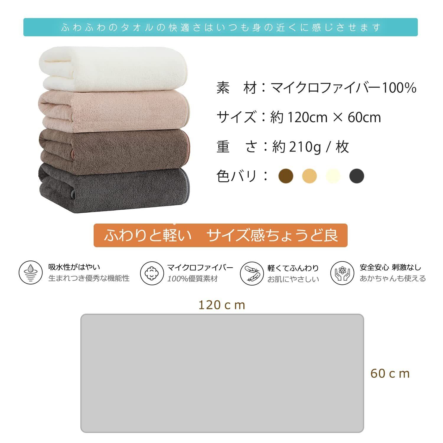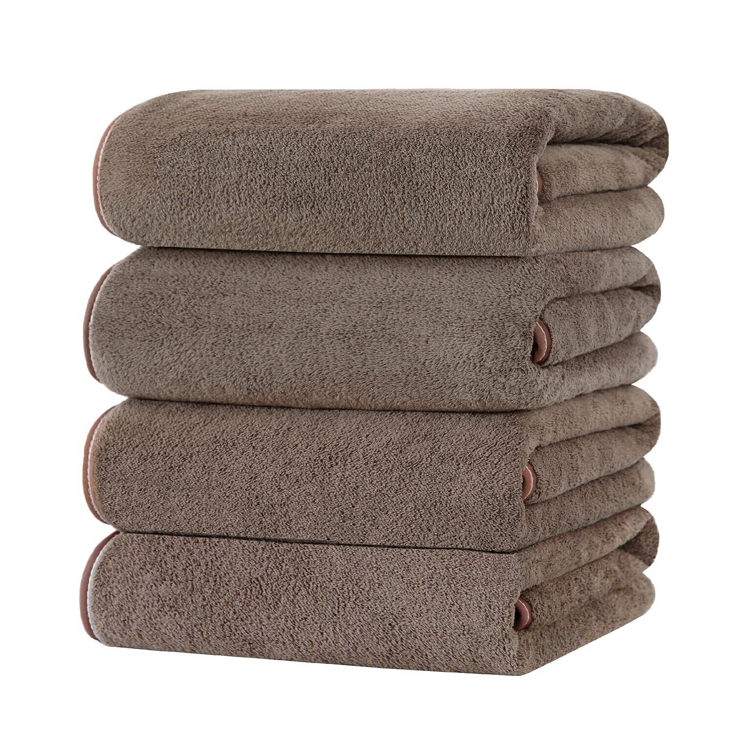 バスタオル マイクロファイバー 4枚セット ふわふわ 柔らか 滑らかな肌触り 吸水性 乾きやすい 耐久性 抗菌防臭 (60*120, ブラウン)