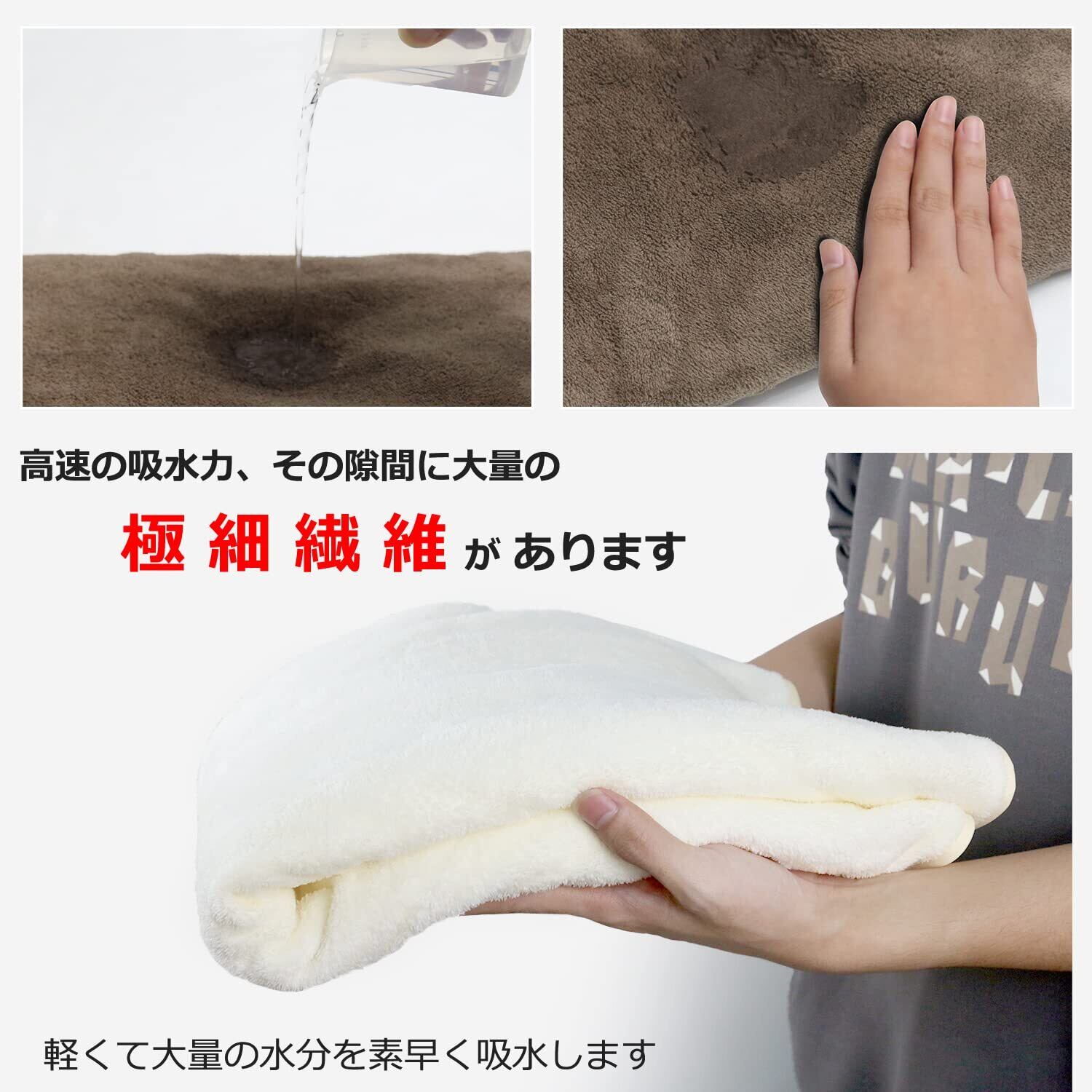 【抜群な吸水力】マイクロファイバーで作られていますので、吸水力は綿より3倍以上勝るという誇りの性能を持つ。繊維に多くの隙間があり、直径8マイクロメートル以下、髪の毛の100分の1以下という細さです。なめらかな手触りと速乾性能や吸水性能の高さが光るポイント。身体を包み込むように羽織るだけでしっかり吸水します。