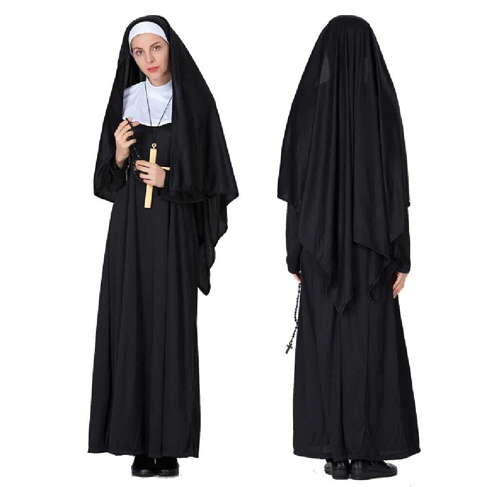 [GIYOMI] シスター服 ハロウィン コスプレ衣装 修道女仮装服 修道服 シスターコスチューム レディース キリスト教衣装 十字架付き 演出服 2タイプ