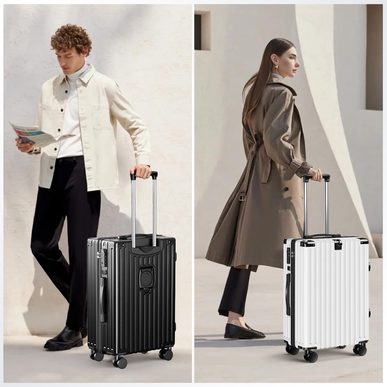 【2025新モデル・多機能な1台】2025年に業界高品質スーツケースが新登場!隠しフックとUSBポット付きで、スマートフォンやタブレットなどのデバイスを充電することができます、外出先でバッグや小物を掛けるのに便利です!。折り畳み式のカップホルダーもいつでも水やコーヒーカップ、または他の飲み物容器を置くことができます。また、欧米基準のTSAロックも装備され、海外旅行にもピッタリ、より便利な旅行へ。