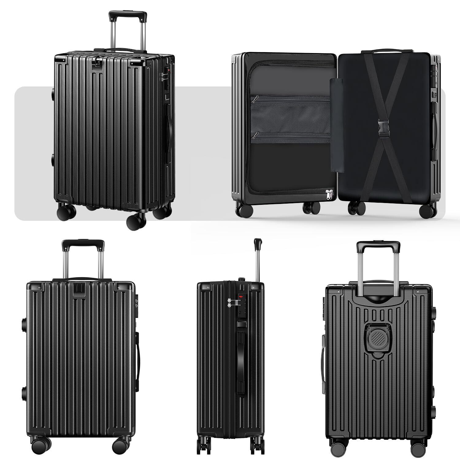 [Augustre] スーツケース 機内持ち込み 超軽量 キャリーケース 大型 軽量 多機能 キャリーバッグ 静音 耐衝撃 ダブルキャスター S/M/Lサイズ カップホルダー付 USB充電機能 隠しフック機能 360度回転 TSAローク搭載 ファスナー式 旅行 ビジネス 出張 (ブラック, M(4~7泊/65L))