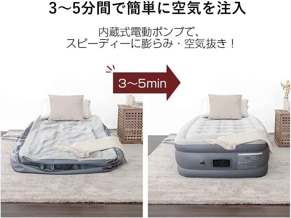 エアーベッド エアーマット シングル 電動ポンプ内蔵 厚さ 45cm 191×99×45cm 空気ベッド 自動的 折り畳みベッド 耐荷重200kg 補修シール 収納バッグ付き お昼寝 来客 キャンプ 旅行 アウトドア 防災用 (Gray)