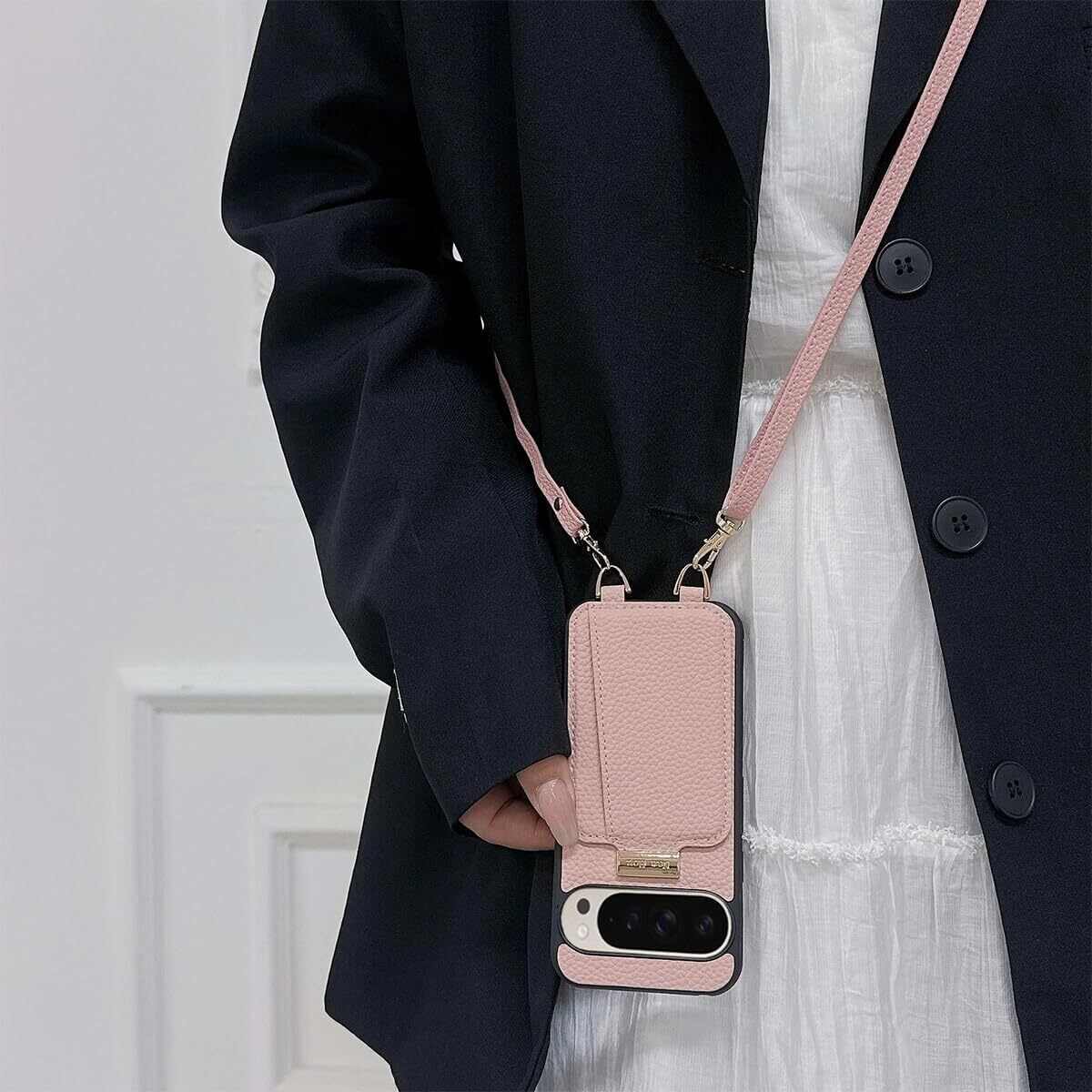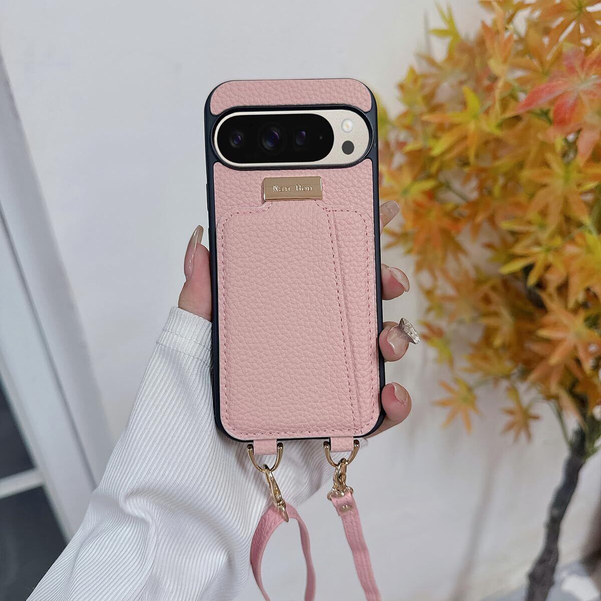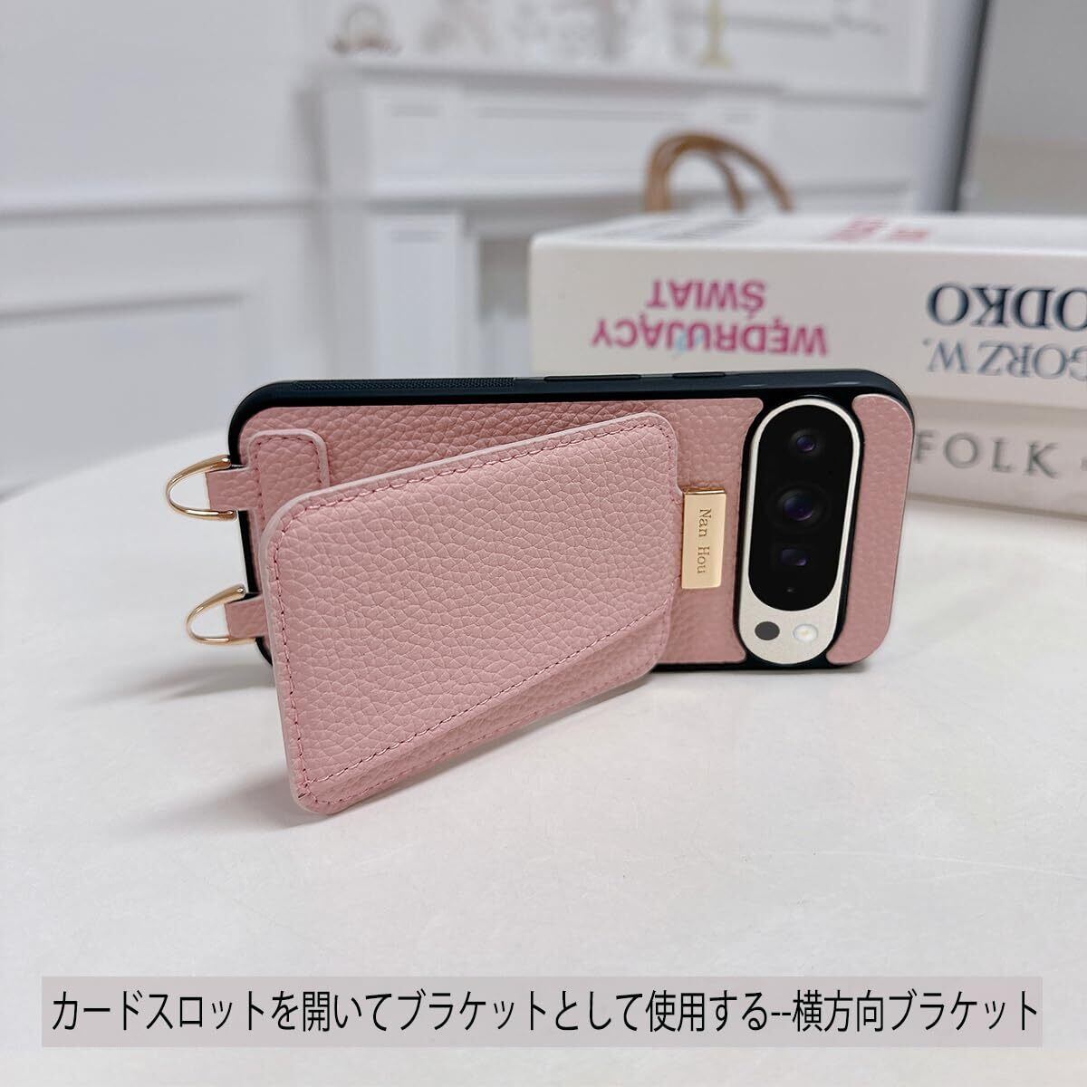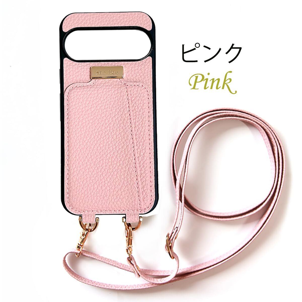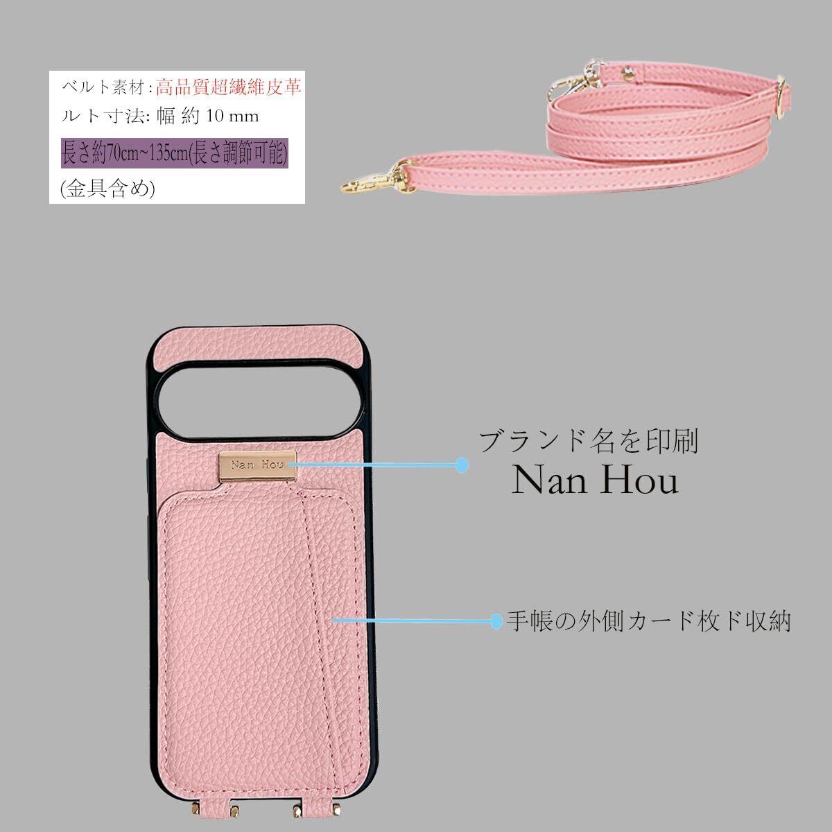 NanHou Google Pixel 9/9 pro ケース 手帳型 高質PU ファッション手帳型 斜めショルダーストラップ付き(長さ調整可能)耐衝撃 保護 Google 9/9pro カバー 内蔵 自吸式開閉 マグネット 背面鏡付き 人気 携帯カバー 女性 上品 カードポケット スタンド機能 リストバンド グーグルピクセル 9/9 pro ケース - ピンク