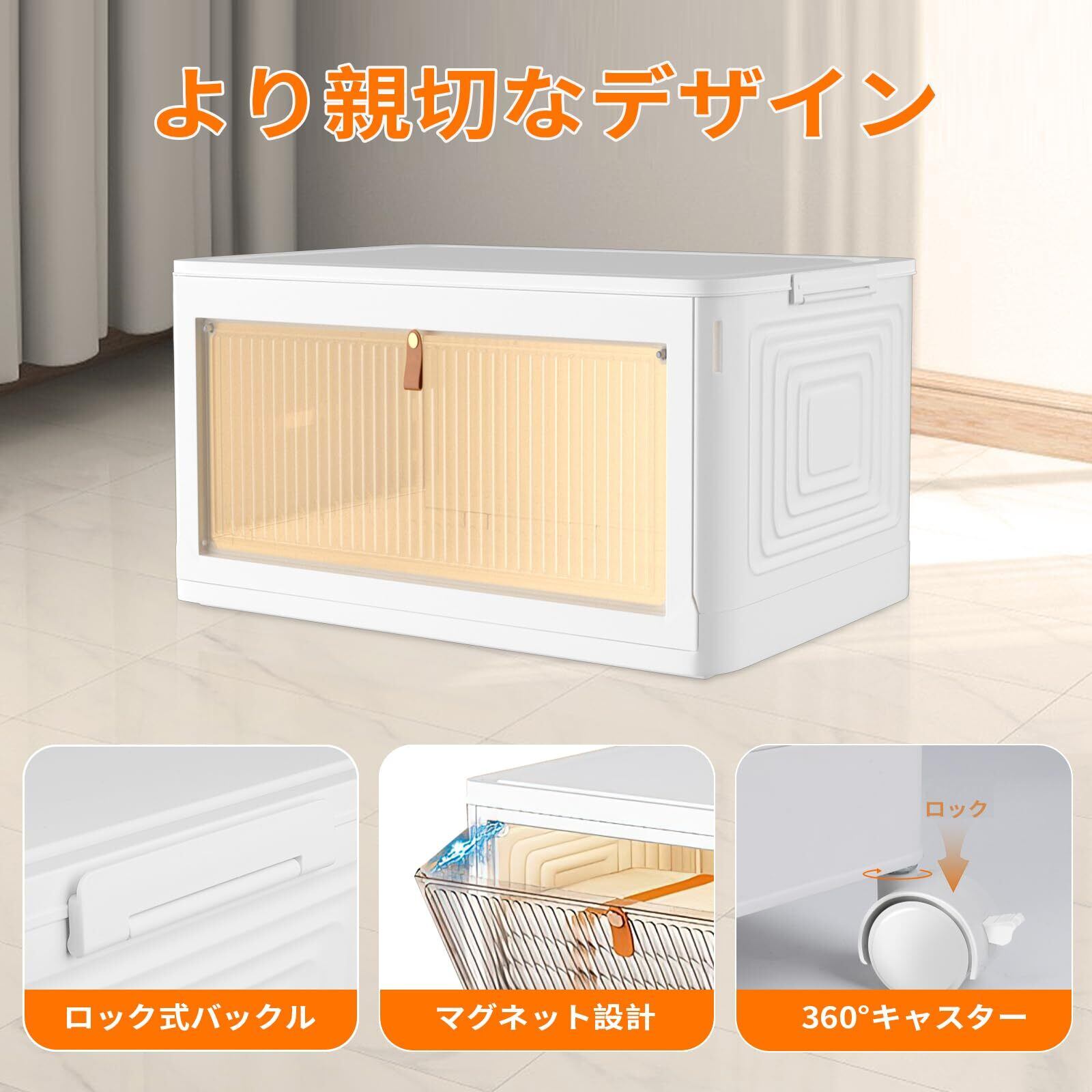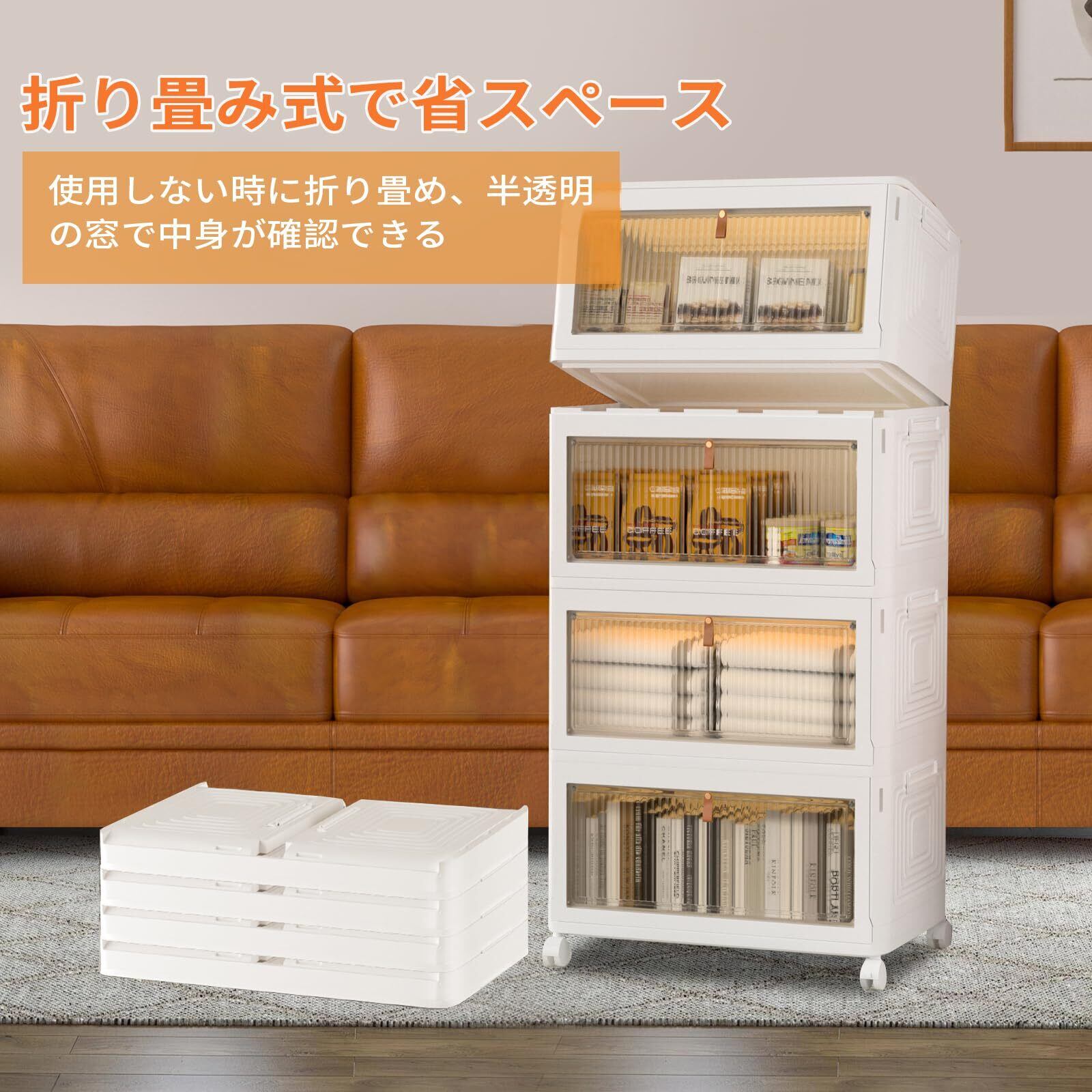 【より親切なデザイン】:収納箱上部の蓋と前扉が開くことができ、物の出し入れがかなり簡単です。また、前扉には強力マグネットを採用しており、勝手に開きません。半透明のドアで中身が簡単に確認することができます。従来の収納ボックスよりもっと便利です。