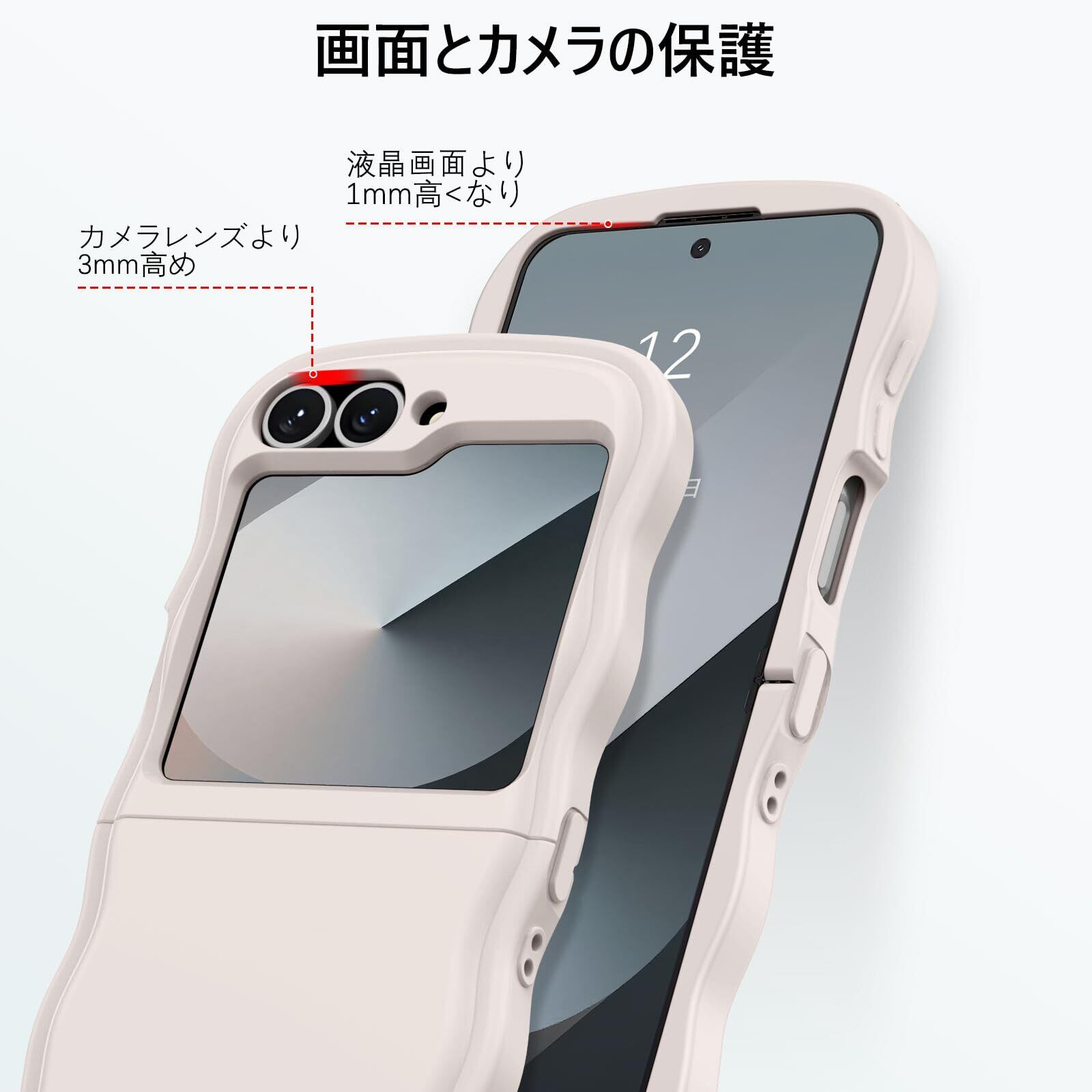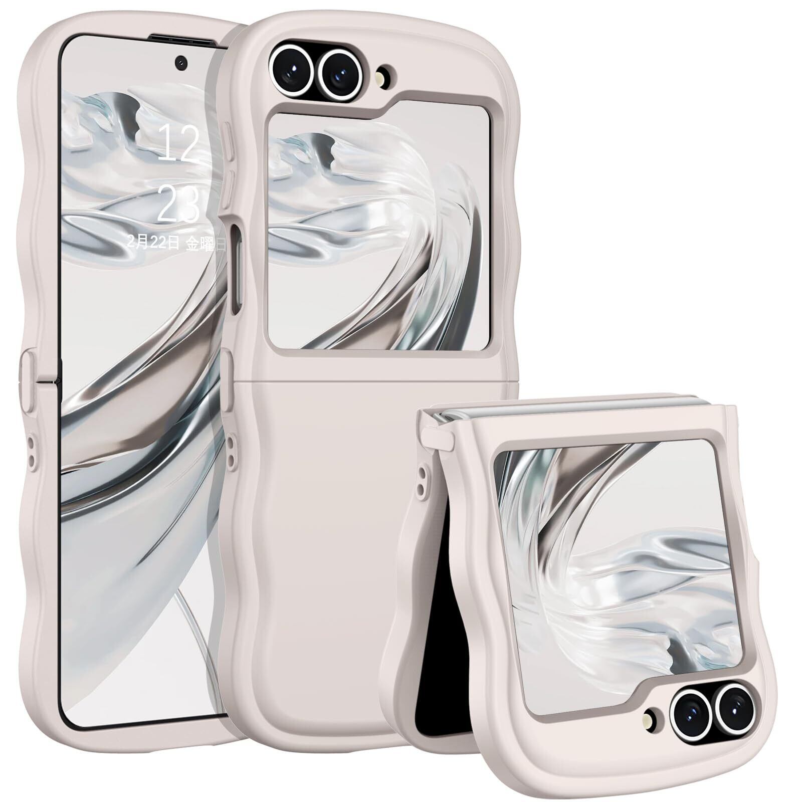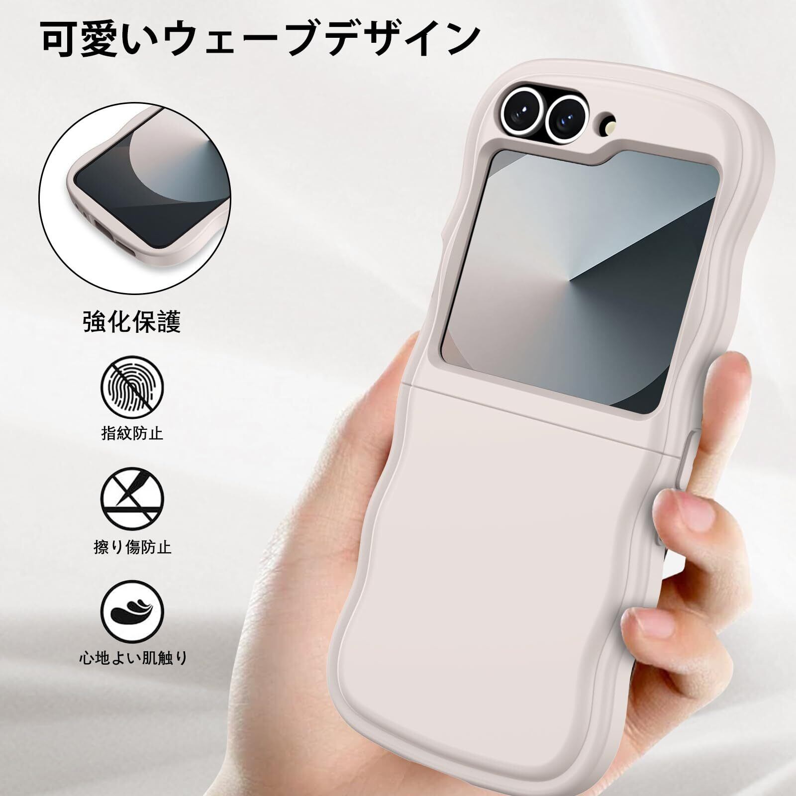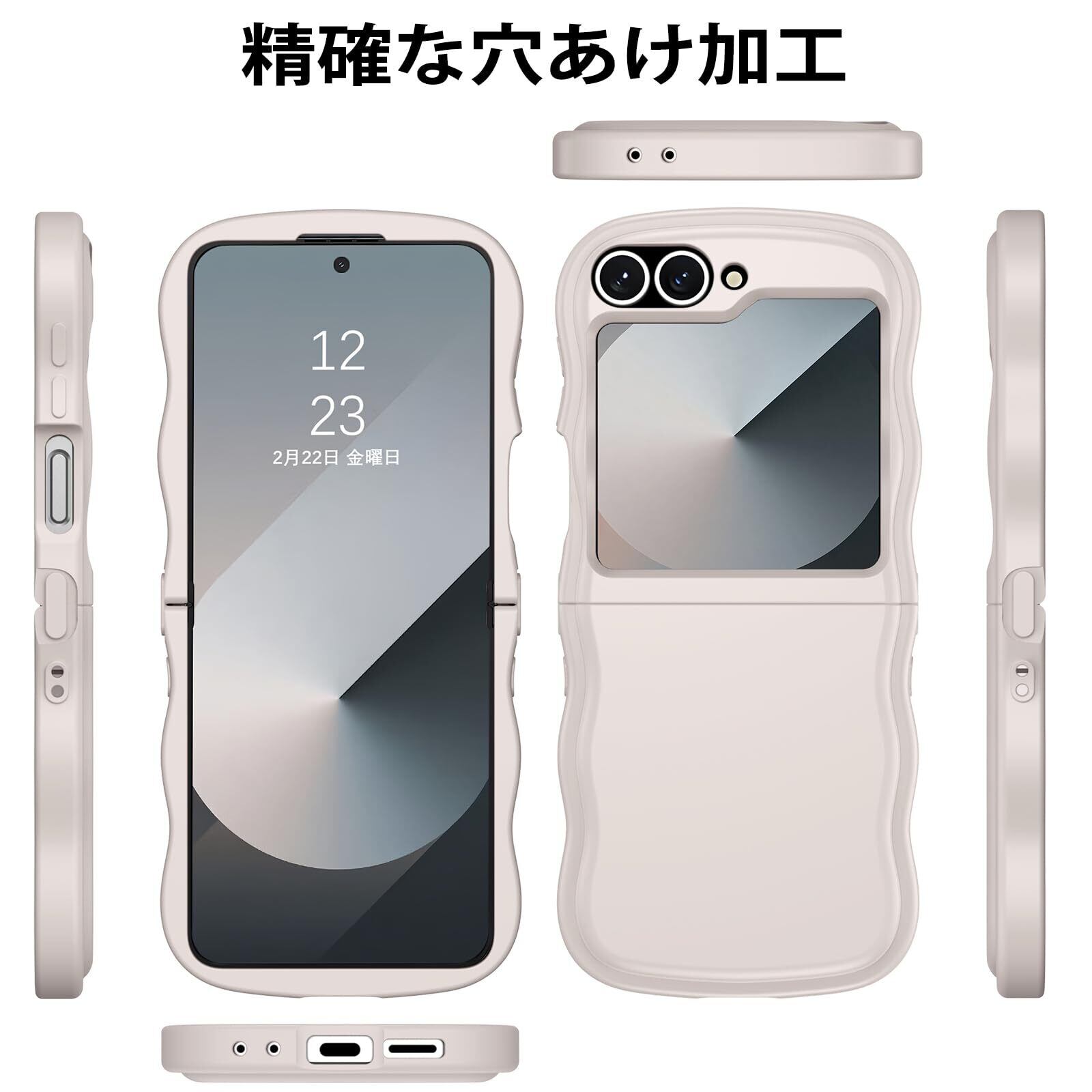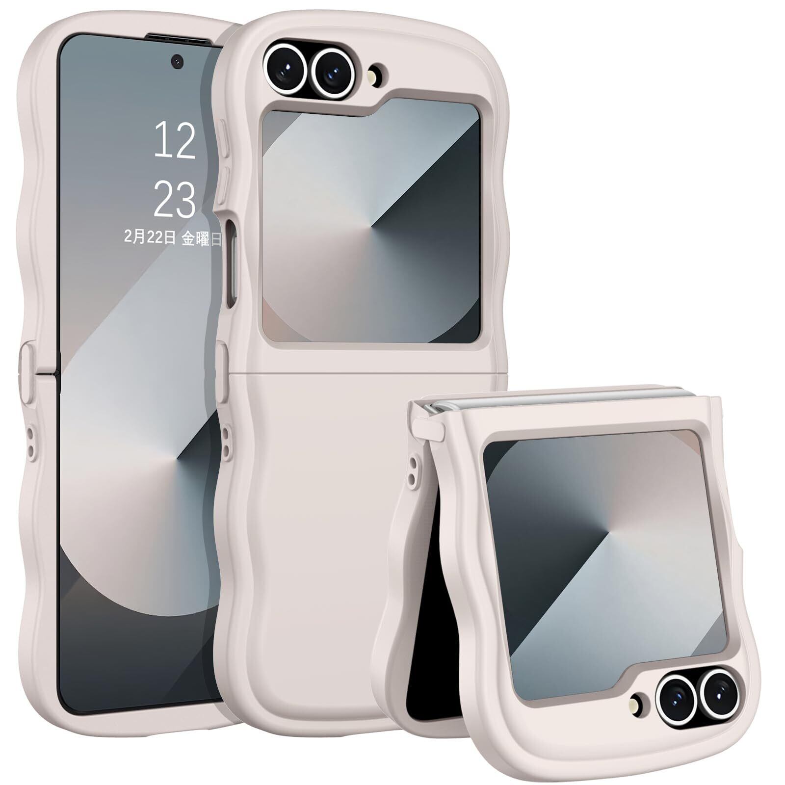 DOMAVER Samsung Z Flip5/Z Flip6 5G 用 ケース おしゃれ 可愛い ウェーブ 傷に強い背面 滑り止め 黄ばみなし ストラップホール付き 画面レンズ保護 指紋防止 耐衝撃 ギャラクシー フリップ5 ギャラクシー ZFlip6用カバー 6.7インチ ホワイト