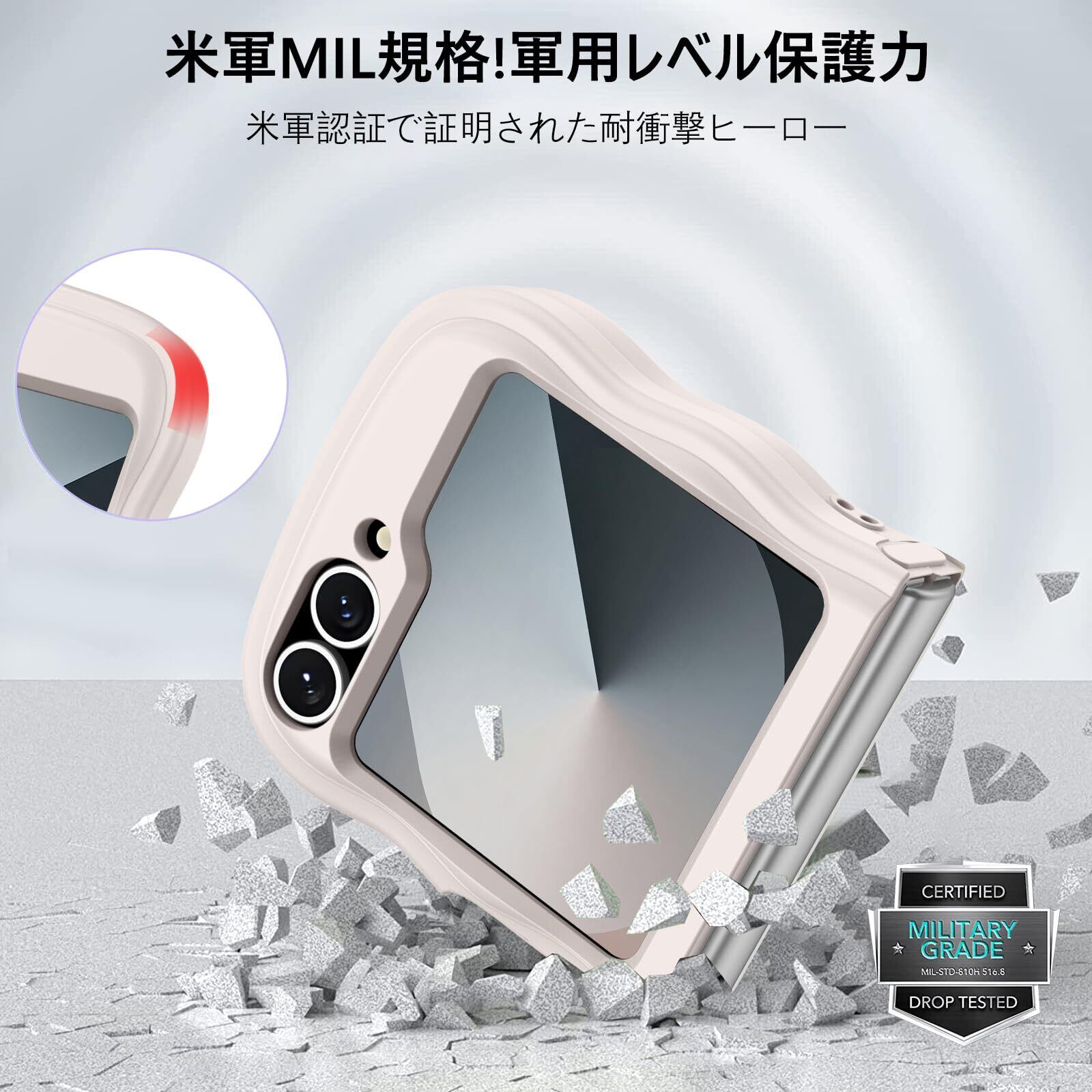 質問2:この Samsung Z Flip5/Z Flip6 ケースの衝撃吸収性能はどの程度ですか?落下時のダメージを防ぐことができますか?
