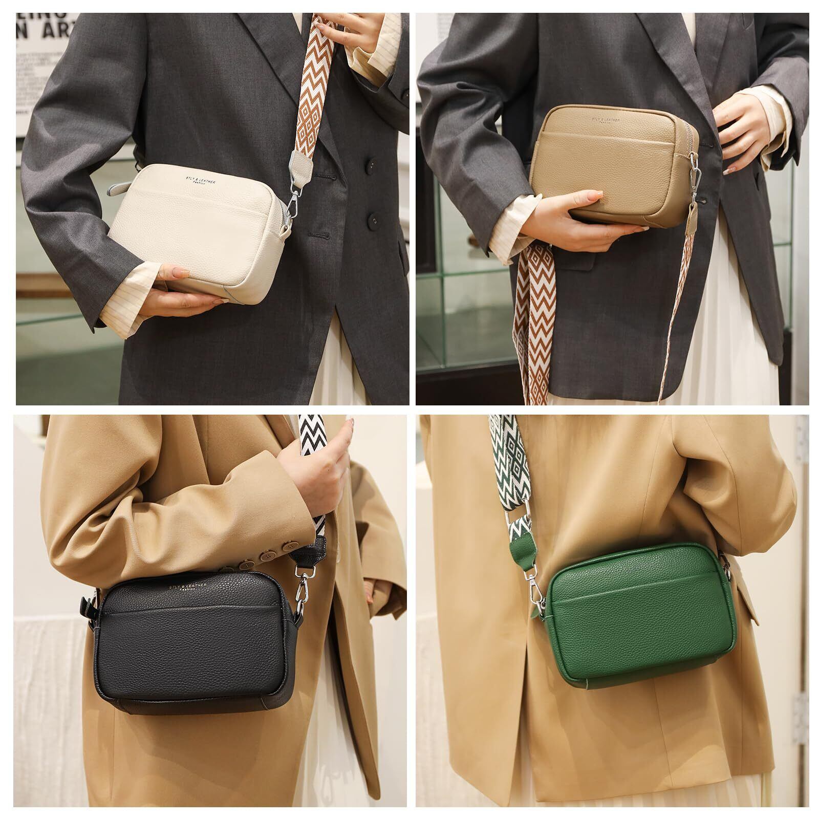 【適切なサイズ】寸法は長さ22cm×幅8.5cm×高さ14cmです。 コンパクトでありながら広々としたこの本革クロスボディバッグは、携帯電話、財布、鍵、サングラス、口紅、その他の日用品を簡単に収納できます。