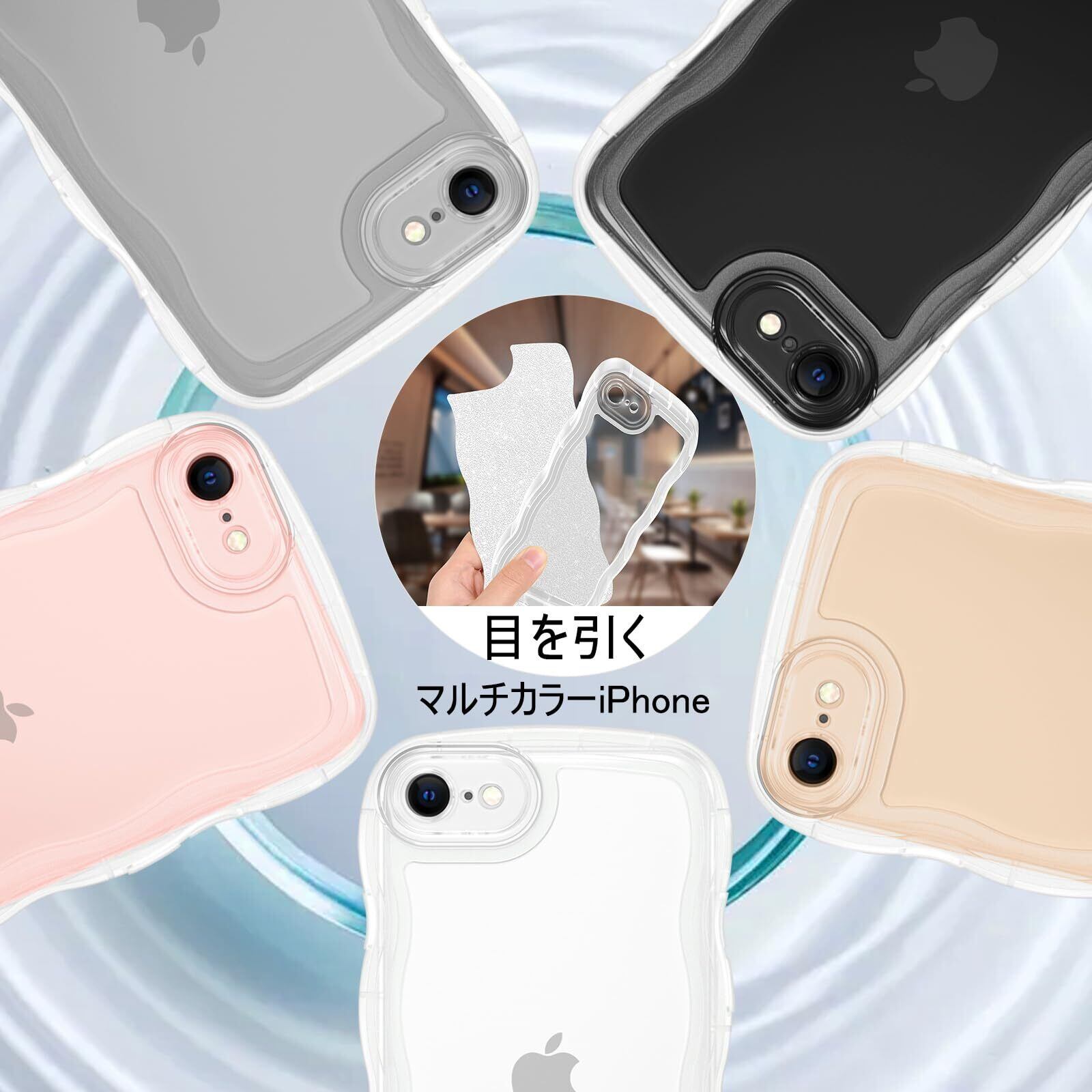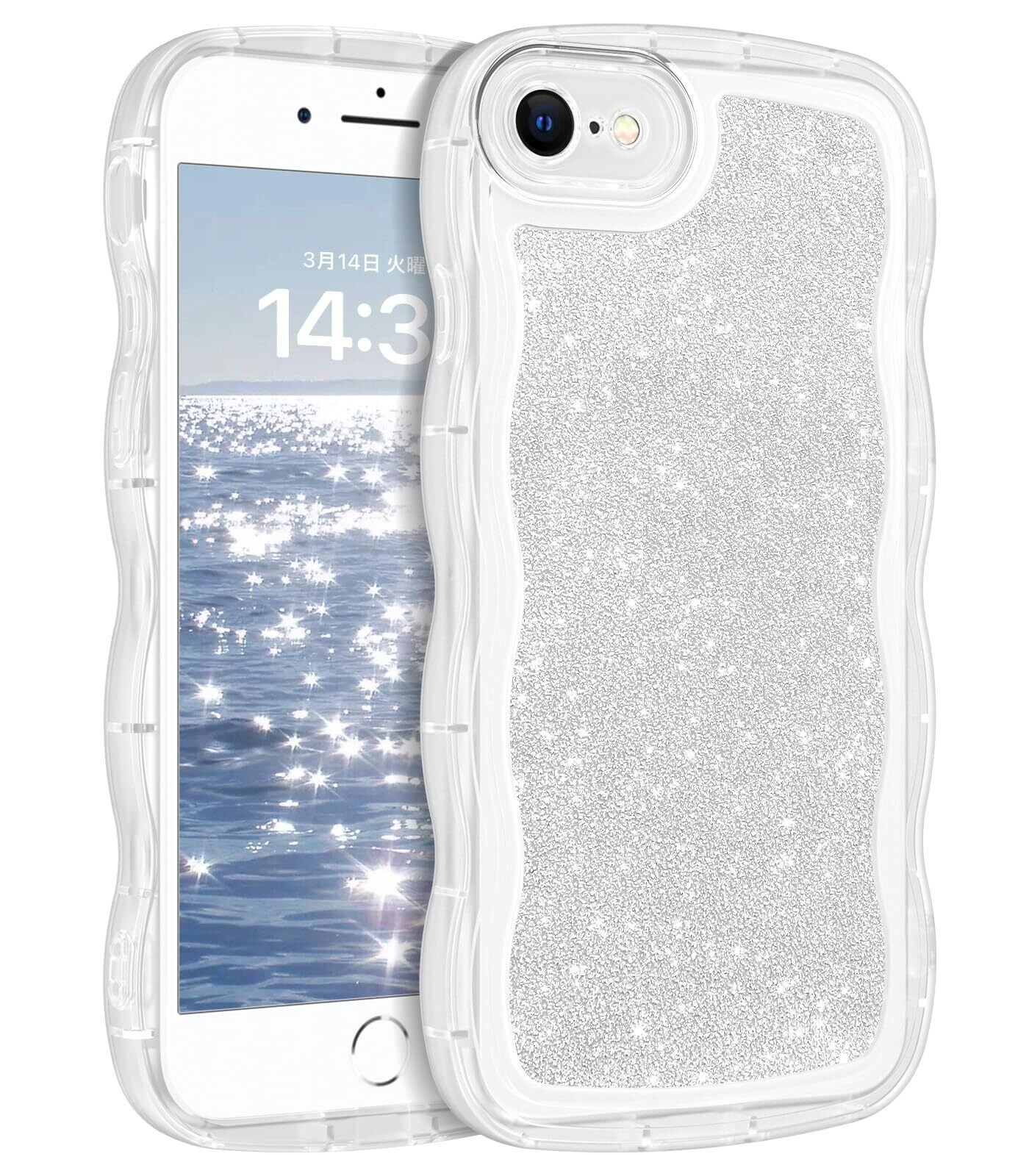 【iPhone 7/8/SE 対応】可愛いウェーブTPUケースはiPhone7/8/SEのみに適合します。ボタンが軽くて押しやすい。 ダイヤモンドのようにラメ紙付きiPhone7/8/SE専用にデザインされたキラキラスリムうねうねケース。 (画面保護フィルムなし)