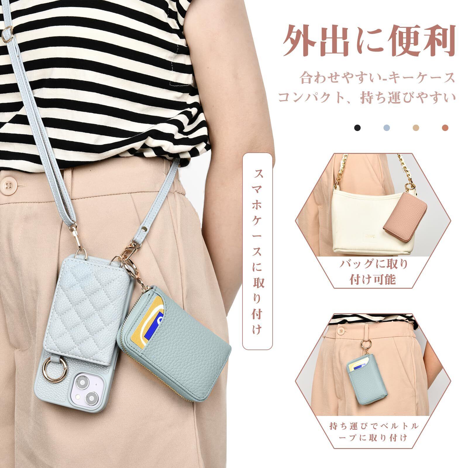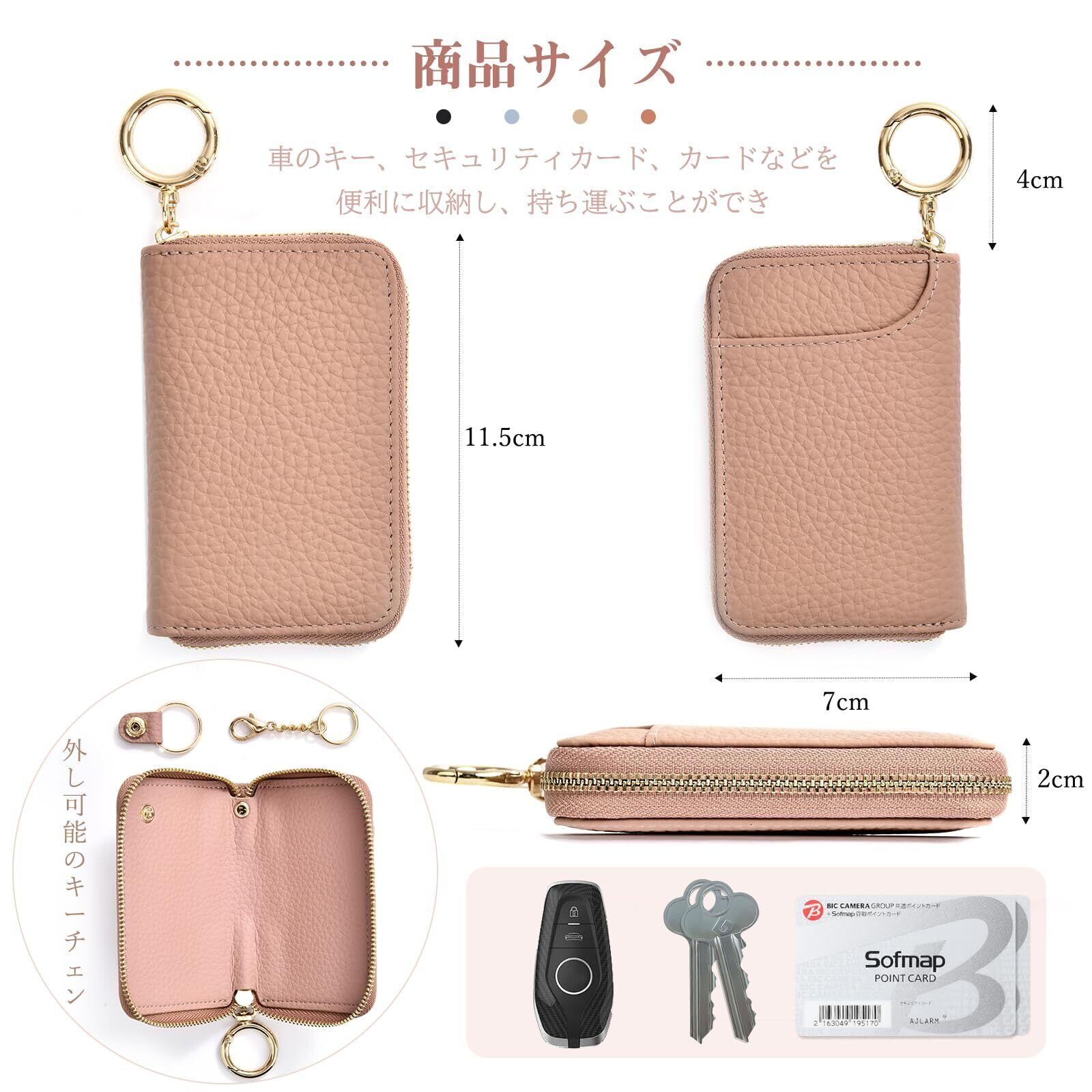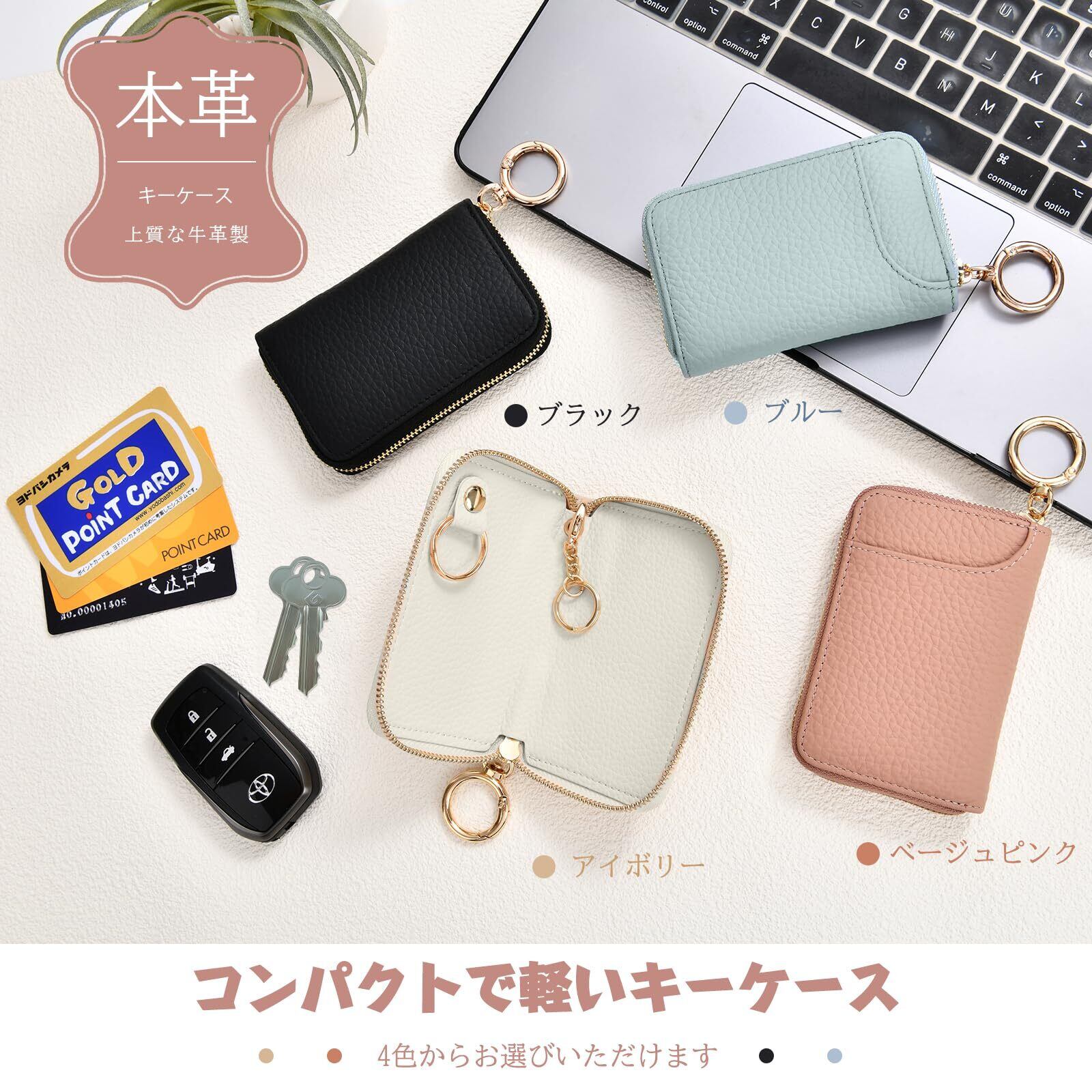 【取り付け便利なナスカンリング】バッグやベルトループに簡単に取り付け可能、スマートに使用できます。金属製のチェーンにはキーリングが1つ付属しているので、鍵を紛失する心配はない。(裏側にはカードポケット1つあり、定期券やクレジットカード、名刺などが収納可能),家、車、バイク、自転車など、あらゆる種類の鍵に使用できます。いつも探している鍵がすぐに見つかります。 シンプルで飽きのこないデザインは、男女問わずお使いいただけます。プレゼントにも人気です。