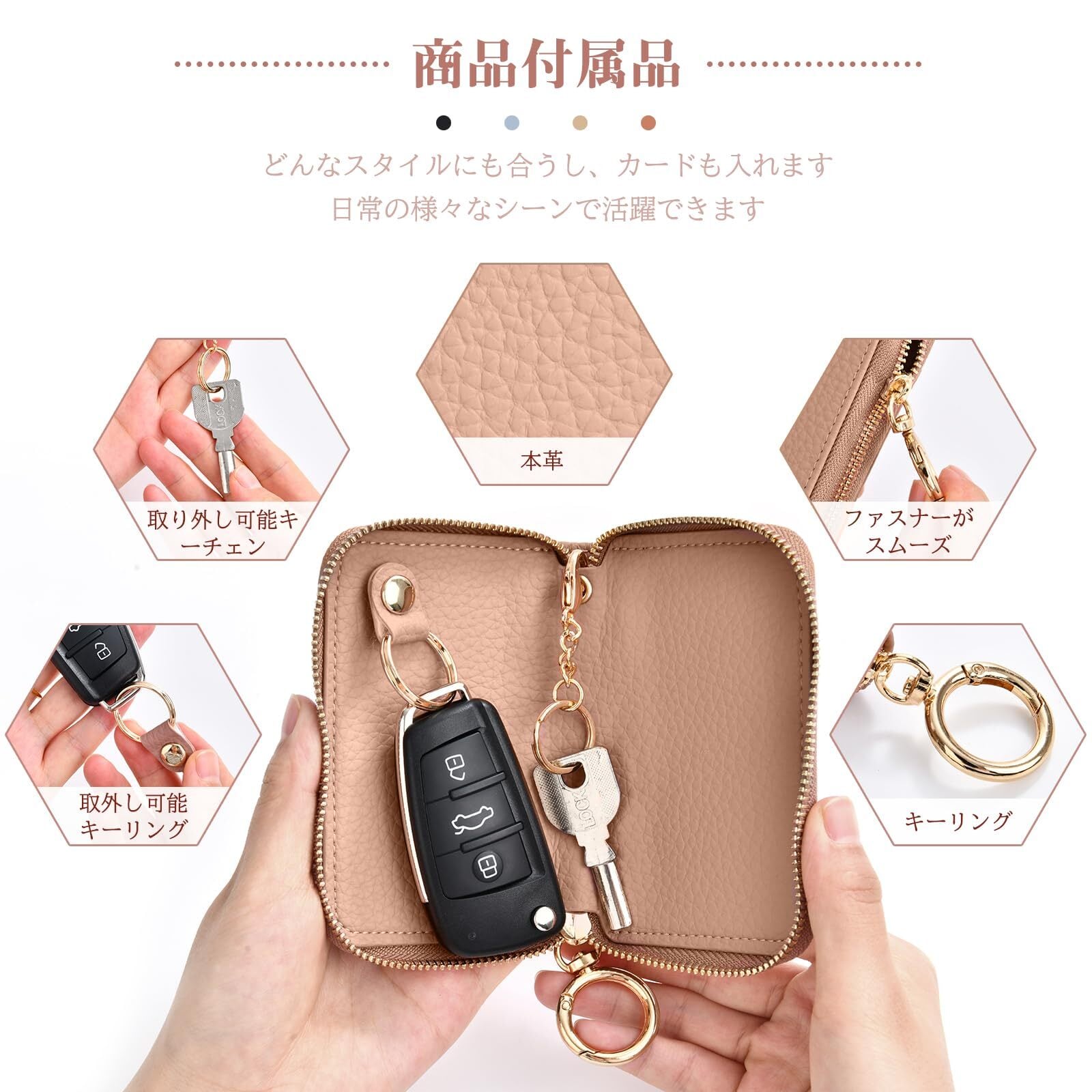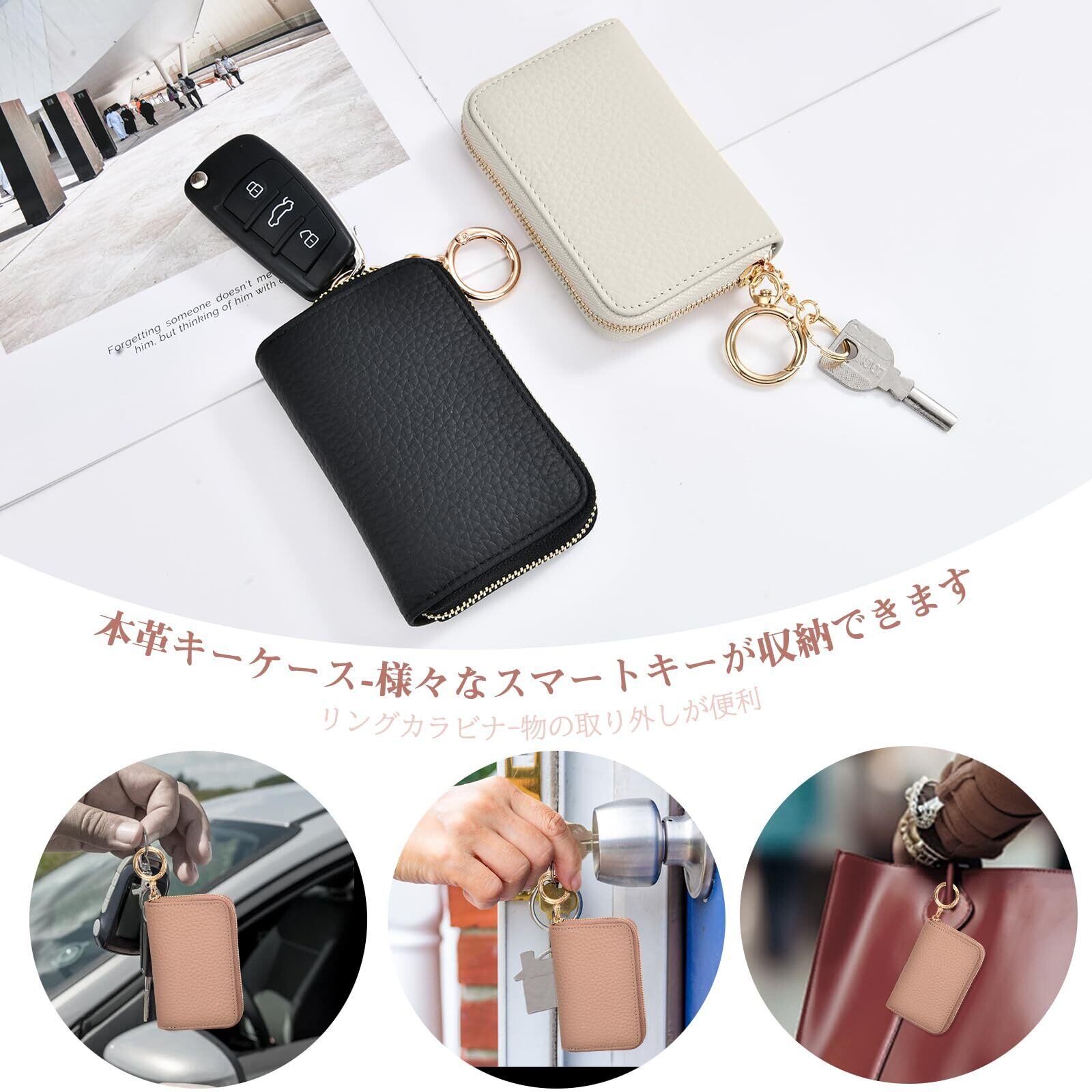 [Accart] 本革 キーケース メンズ スマートキーケース レディース カバー型 キーホルダー 牛革 クリア窓付き ファスナー メンズ シングル キーケース 通勤 おしゃれ 本革 車キーケース カラビナ付き レザー メンズ 女性 キーリング キーチェーン