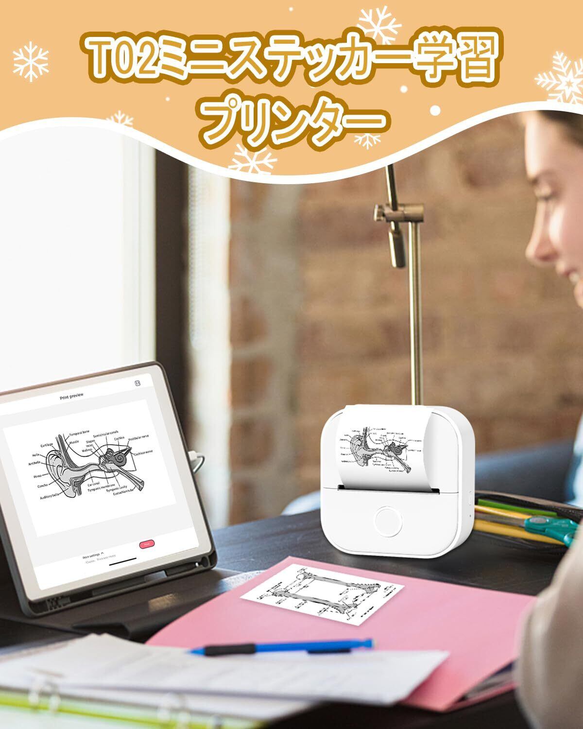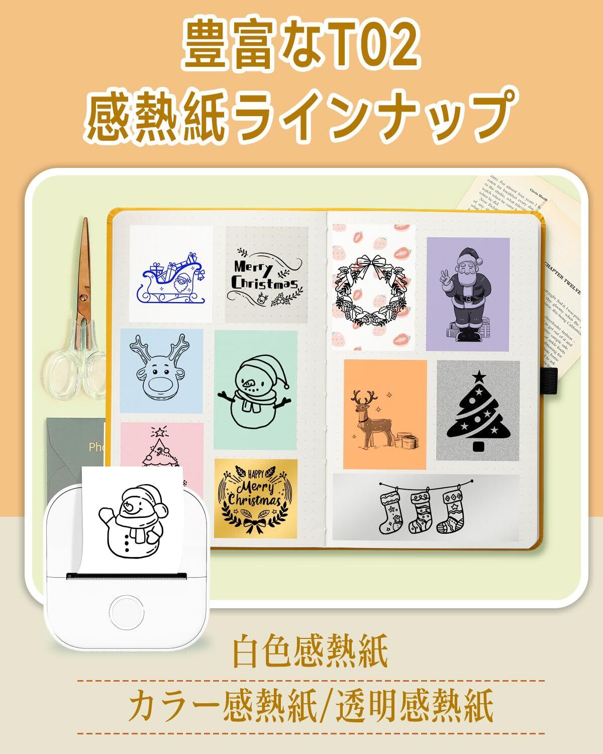 高い実用性 - T02多機能サーマルプリンタはラベルプリンター、写真、学習ノート、ステッカー、領収書、名刺などを印刷することができます。学生さんやお子様、OLさんにもお使いいただけます。また、親戚や友人のための休日の贈り物としても適です。様々な感熱紙があなたの印刷をより面白くしてくれます