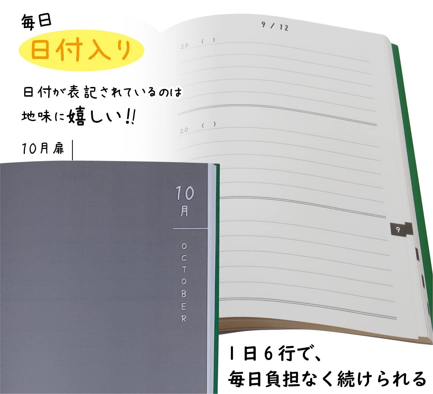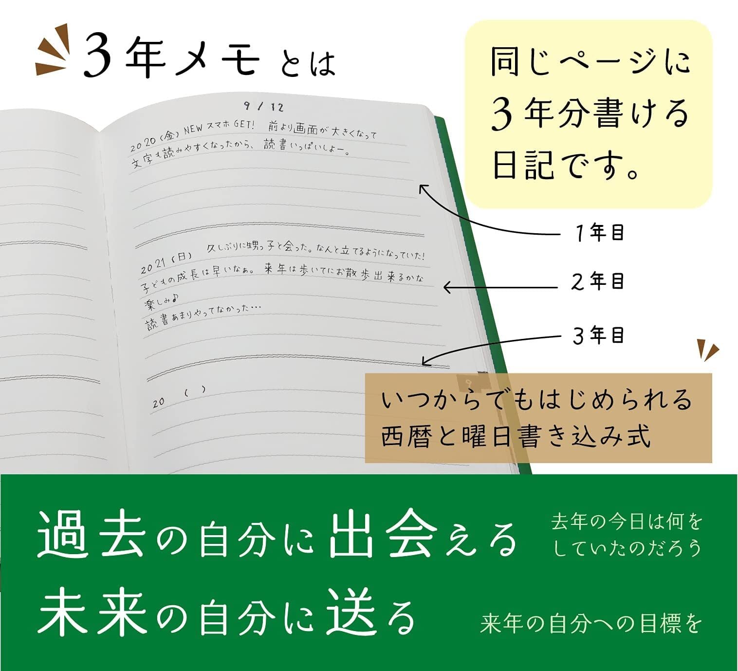 ノートライフ 3年メモ 日記帳 a5 (21cm×15cm) 3年日記 日本製 ソフトカバー PUR製本 日付付き (いつからでも始められる 緑)