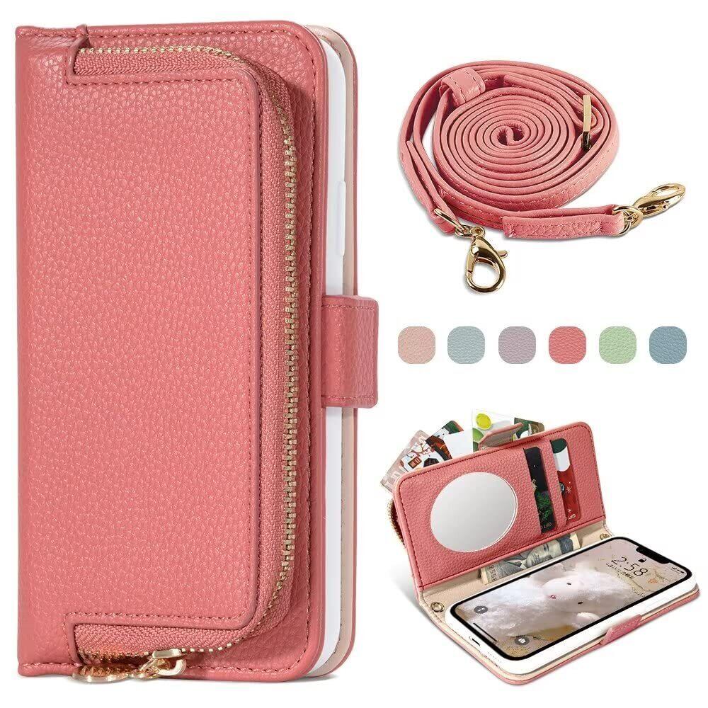 YIZHIN iPhone 11 ケース 手帳型 肩掛け ショルダー iPhone 11 ケースカード入れ iPhone 11 スマホケース 財布型 アイフォン 11 ケース 付き斜め掛けiPhone 11 手帳 ケース おしゃれ 可愛い ミラー付 iPhone 11 ケース トレンド iPhone 11 携帯ケース 美しい iPhone 11 電話ケース かわいい あいふぉん 11 手帳 ケース iPhone 11 ケース 肩掛け 首かけ 斜めがけ ショルダー iPhone 11 ケース カード収納 スタンド機能 PUレザー マグネット式 耐衝撃 防汚 便利 おしゃれ 気質首かけケース クリスマス プレゼント(iPhone 11(6.1"),オールドローズ)