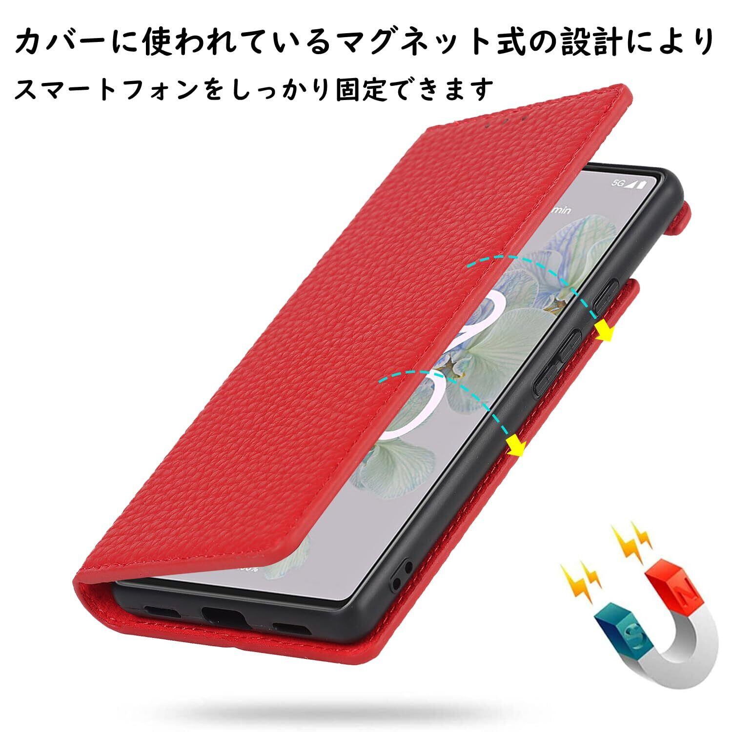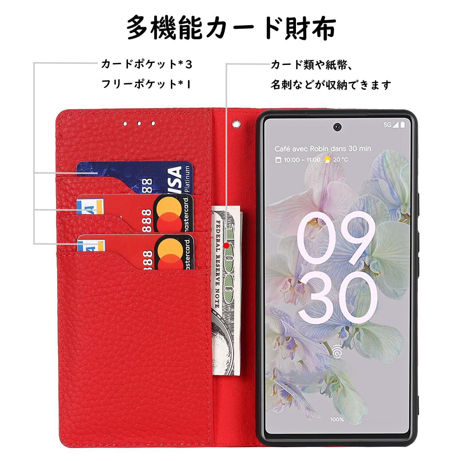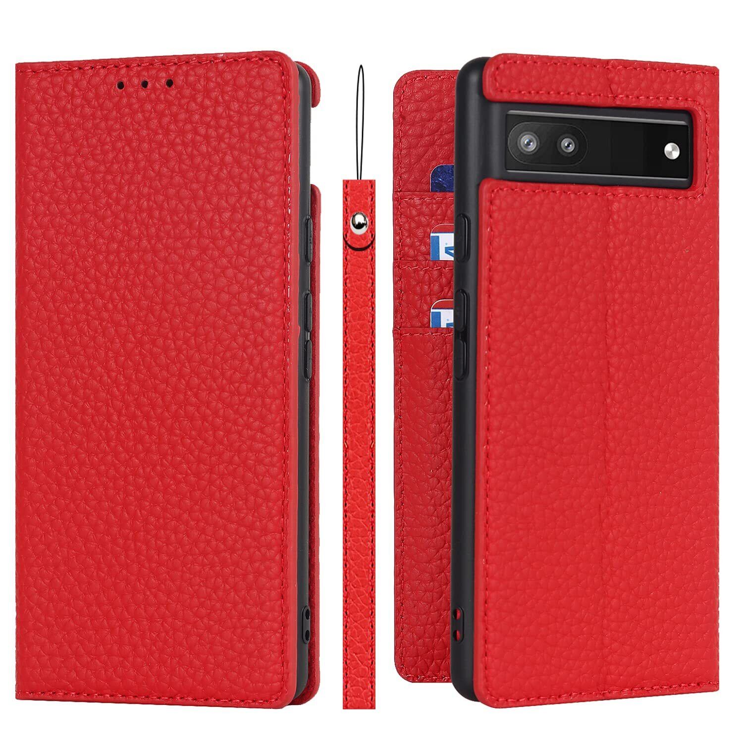 Havaya Pixel 6a ケース グーグルピクセル6a ケース Google Pixel 6a ケース 手帳型 本革 au ストラップ カバー docomo 耐衝撃 softbank カード収納 スタンド機能 レザー-レッド
