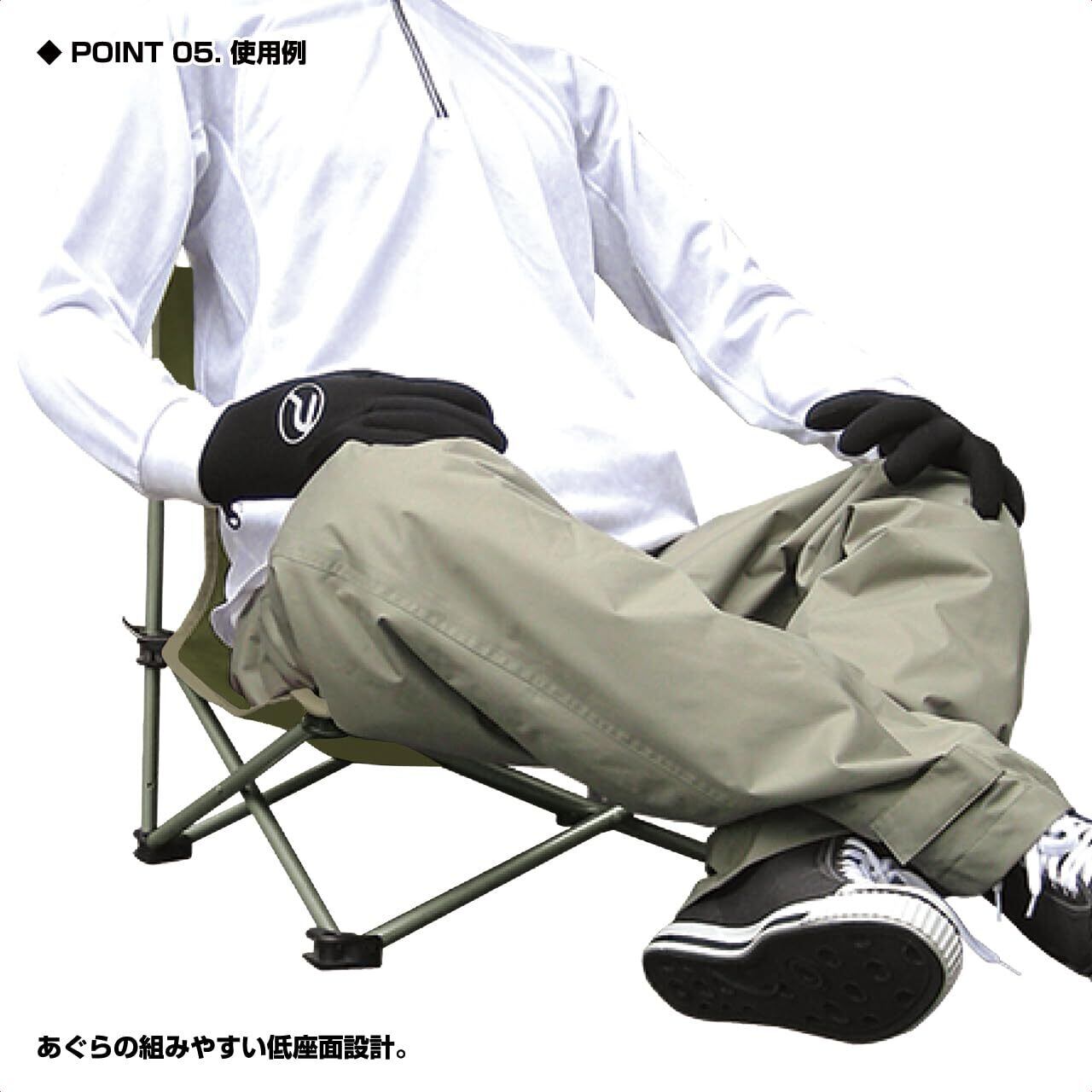 フィッシングやアウトドアなどで大人気!収納や持ち運びに便利な折り畳みチェアチェアの高さを低くし、あぐらの組みやすい設計。ゆったり座れるワイド座面。安定感抜群の座面高18cm。