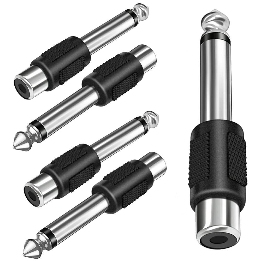 3.5mm 6.35mm 変換アダプタ 変換アダプタ オーディオケーブル ステレオミニプラグ(メス)⇒ステレオ標準プラグ(オス) スピーカー ミキサーなど用対応 標準アダプタコネクタ ミニプラグ(6.35 モノラル - RCAコネクター、5個入り、ブラック)