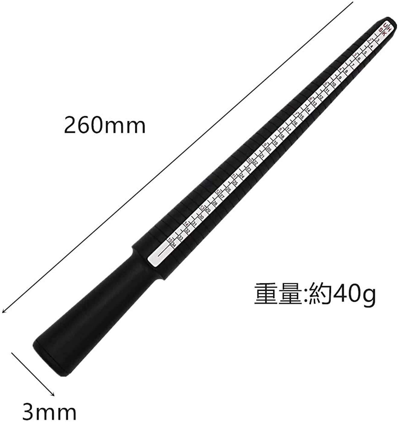 1.製品名:サイズを調べたい指輪をこの棒に挿すとサイズがわかり優れリングゲージ棒です。リングのサイズがわからない時に指の太さを測る為の道具です。