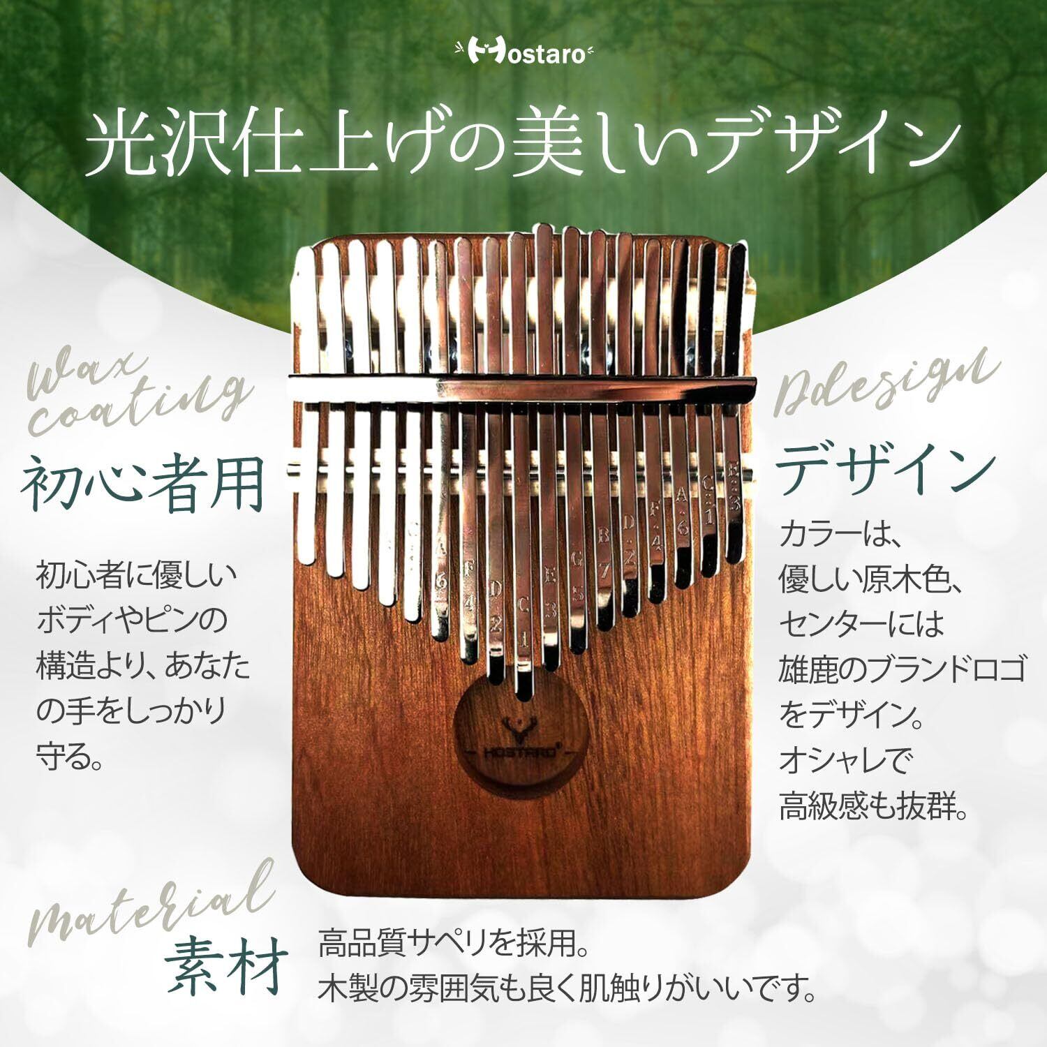 Hostaro カリンバ 親指ピアノ kalimba 17キー ソリッド 楽器 人気 保護ケース付き 初心者向 日本語マニュアル(エレガント)