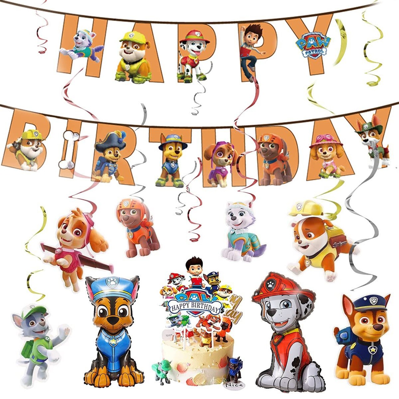 Fantasyon パウパトロール 風船セット 誕生日 飾り付けセット パーティー 可愛い happy birthdayガーランド ケーキトッパー 螺旋風船リボン付き