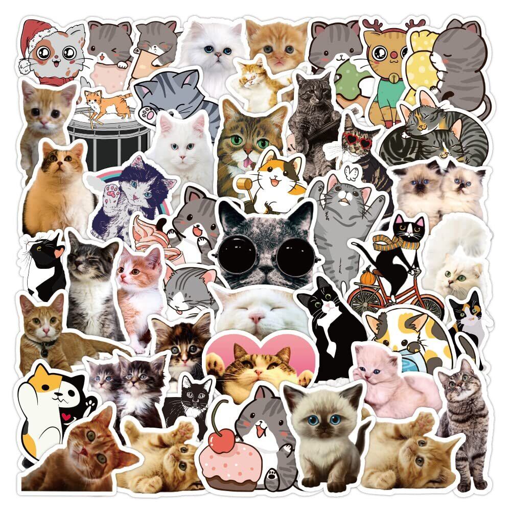 かわいいねこステッカーセット 50枚入り かわいいねこ防水デカール 猫シールパック スーツケース ノートパソコン バイク ヘルメットなど適用
