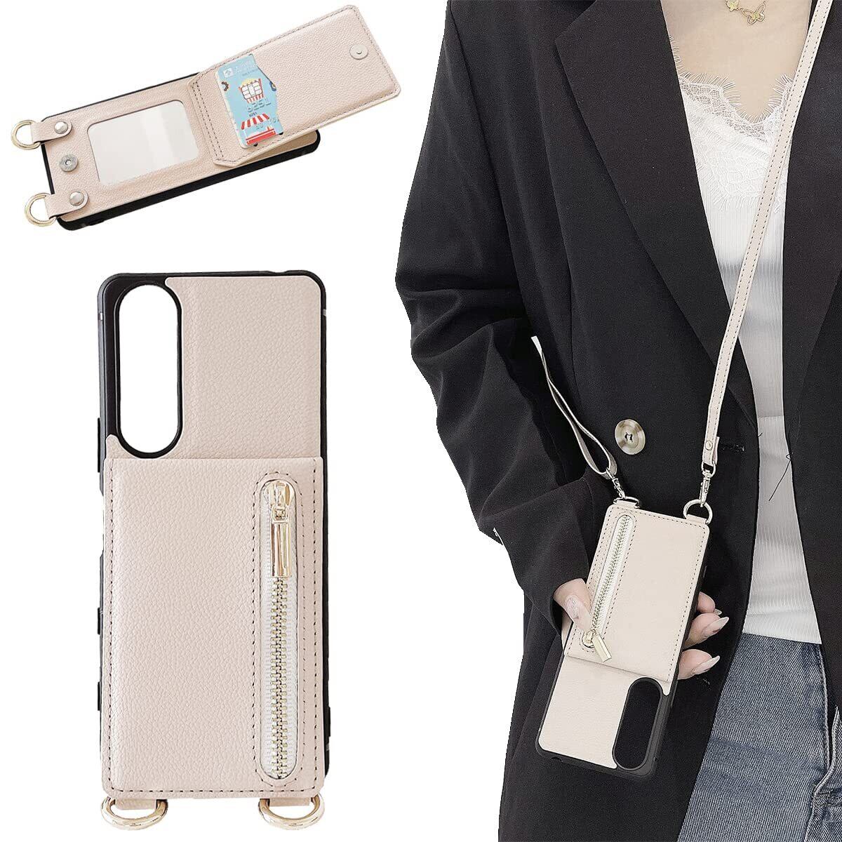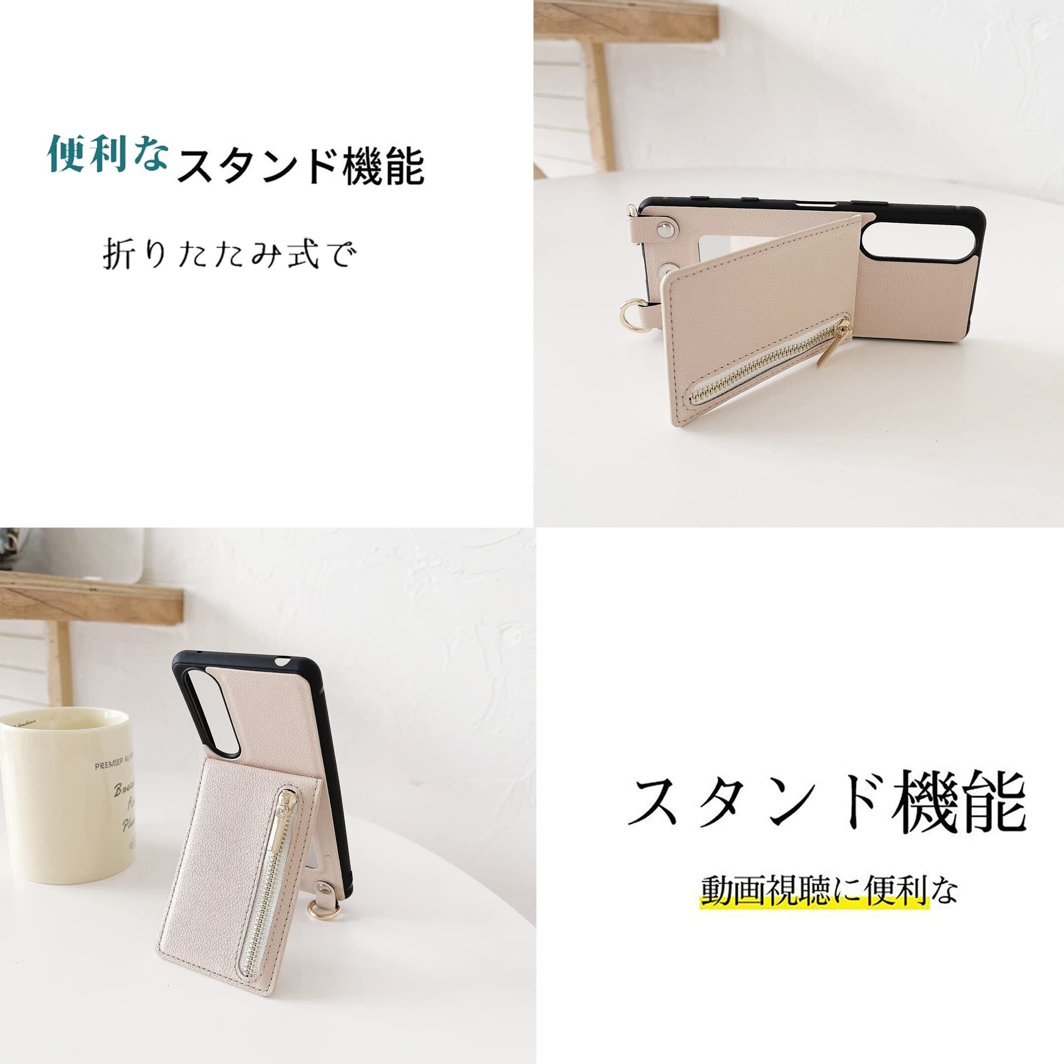 Xperia 5 II ケース 高質レザー Xperia 5 II カバー 肩掛け 首かけ 斜めがけ SO-52A ケース ショルダー エクスペリア 5 II ケース ミラーケース SOG02 ケース 便利 カードポケット スタンド機能 落ち着いた色 調節可能 軽量 多機能 縦置き ICカード収納 財布型 耐衝撃 携帯 鏡付き ケース むぎいろ