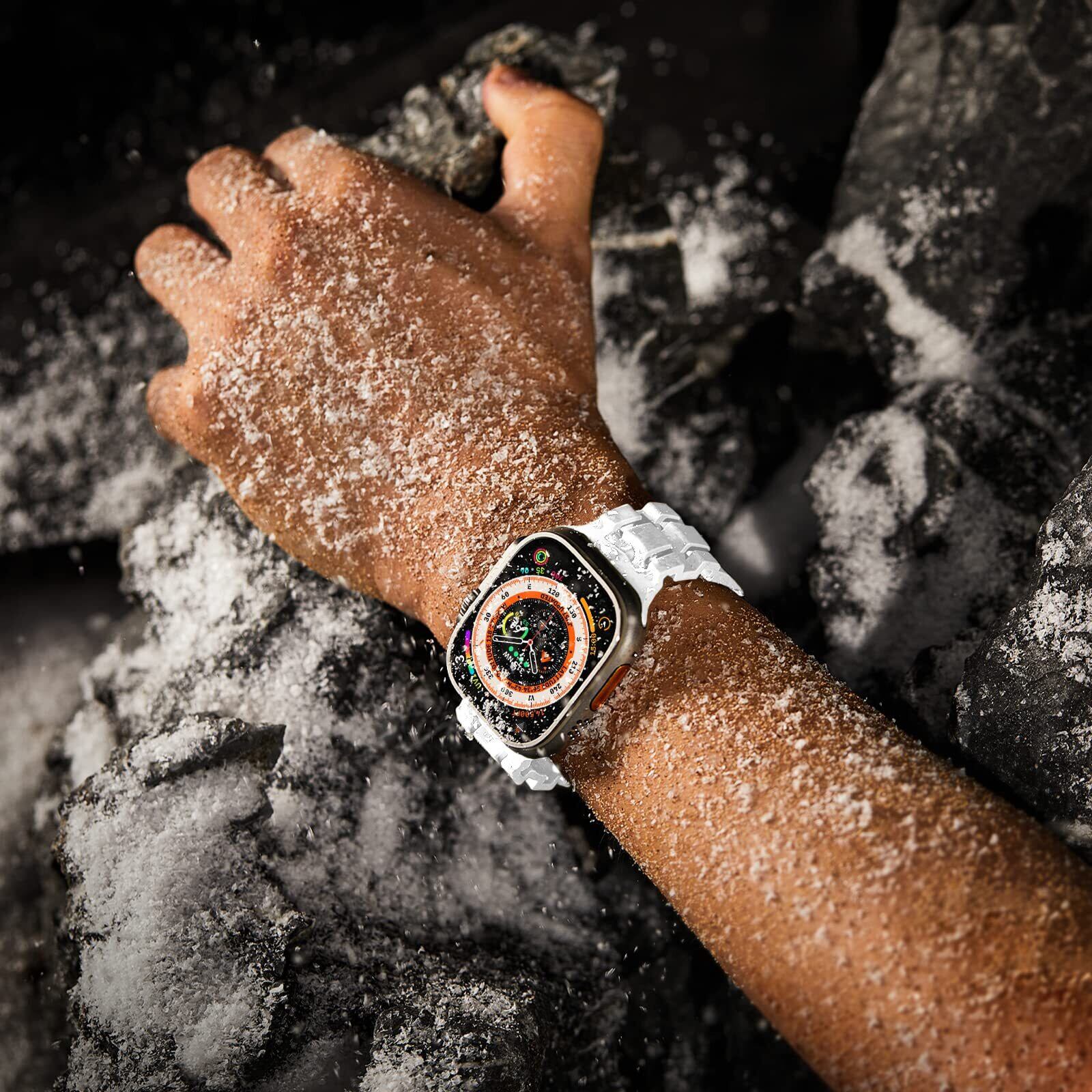 【極限スポーツ風】屈強なバンド造形、男性向けの荒っぽいスタイルです。このアップルウォッチベルトは優れた防水性と防汗性で、サーフィン、水泳、登山、ハイキング、キャンプ、ロッククライミングなど冒険スポーツ用には最適です。