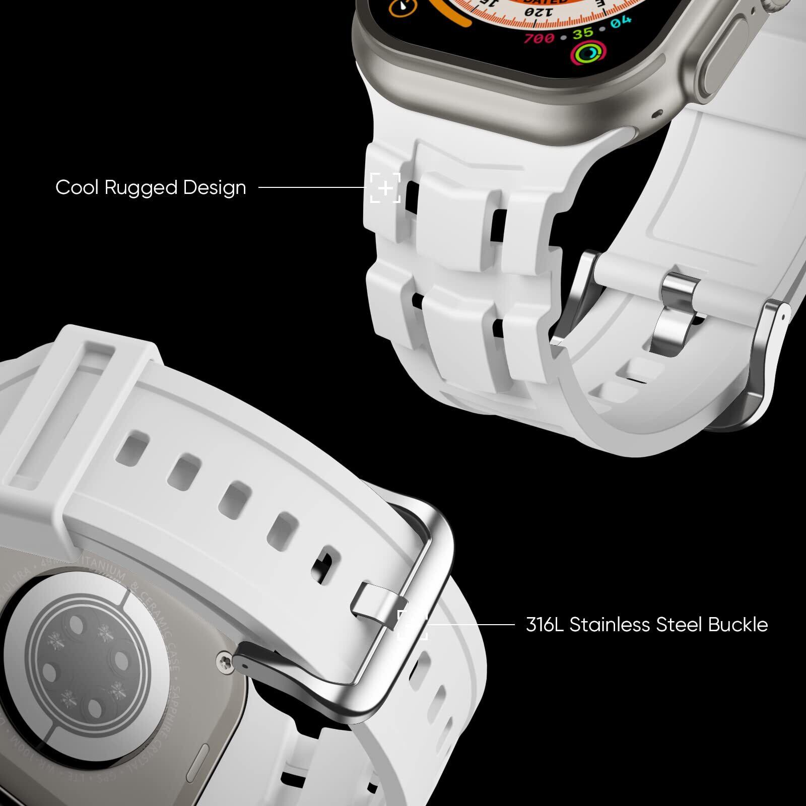 Suitisbest コンパチブル Apple watch バンド 49mm 45mm 44mm 42mm アップルウォッチバンド 交換用 シリコンベルト Apple watch スポーツバンド 長さ調整可能 シリコン製 耐衝撃 防水 防汗 運動 メンズ iWatch Series Ultra 8 7 SE 6 5 4 3 2 1に対応 ホワイト