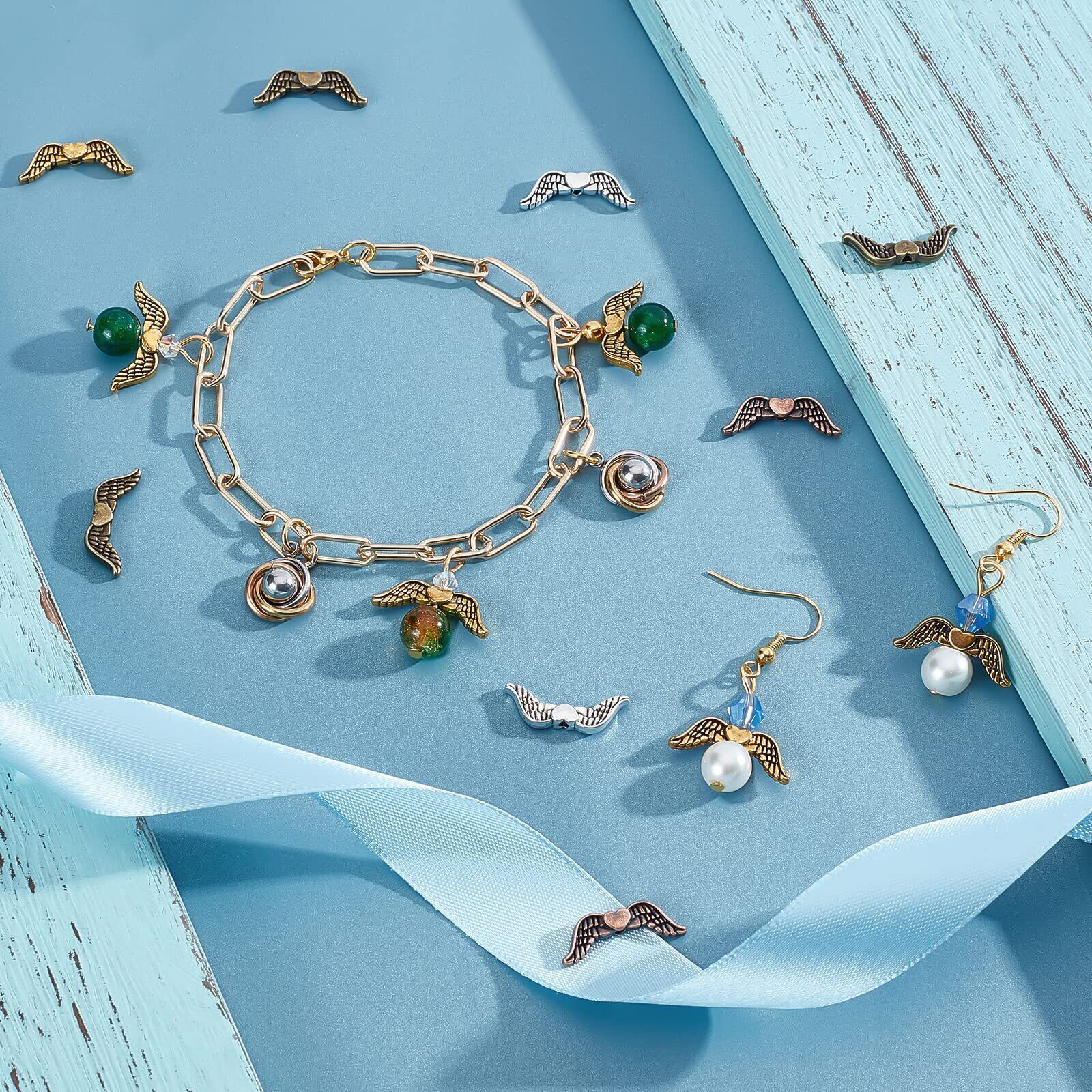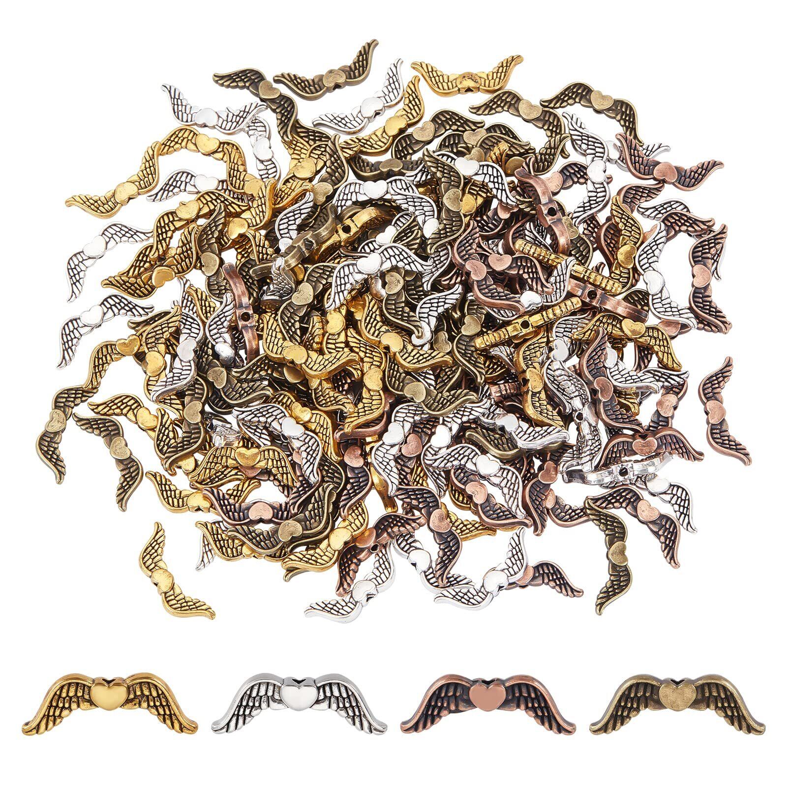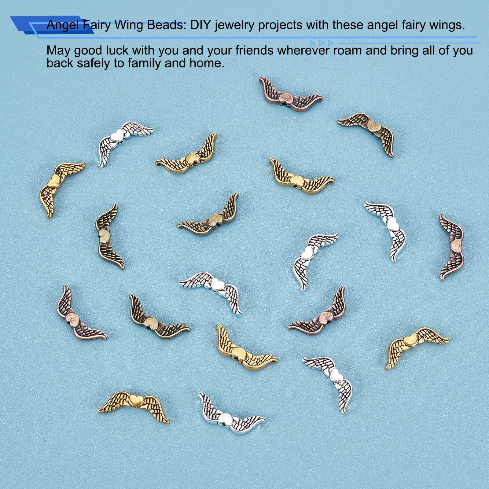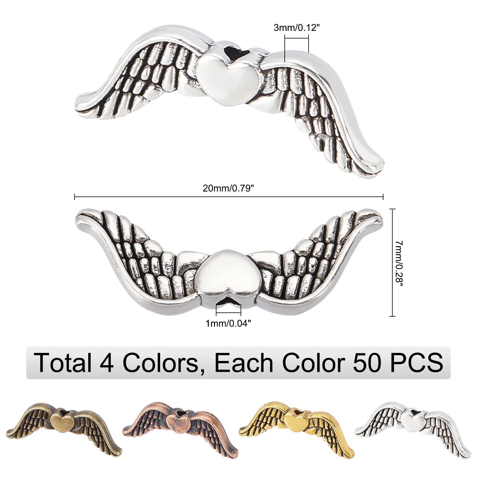 選べる4色のビーズ: パッケージには、4色の200個の天使の羽の形の金属スペーサービーズが含まれています。(アンティークゴールド/シルバー/ブロンズ/レッドカッパー)