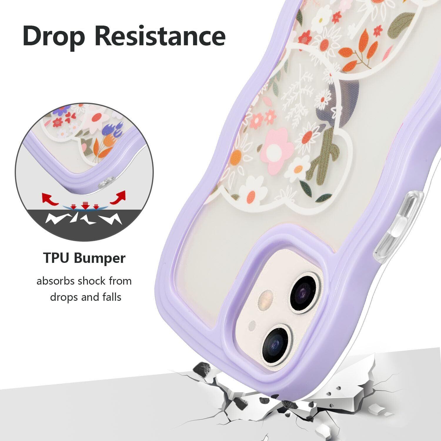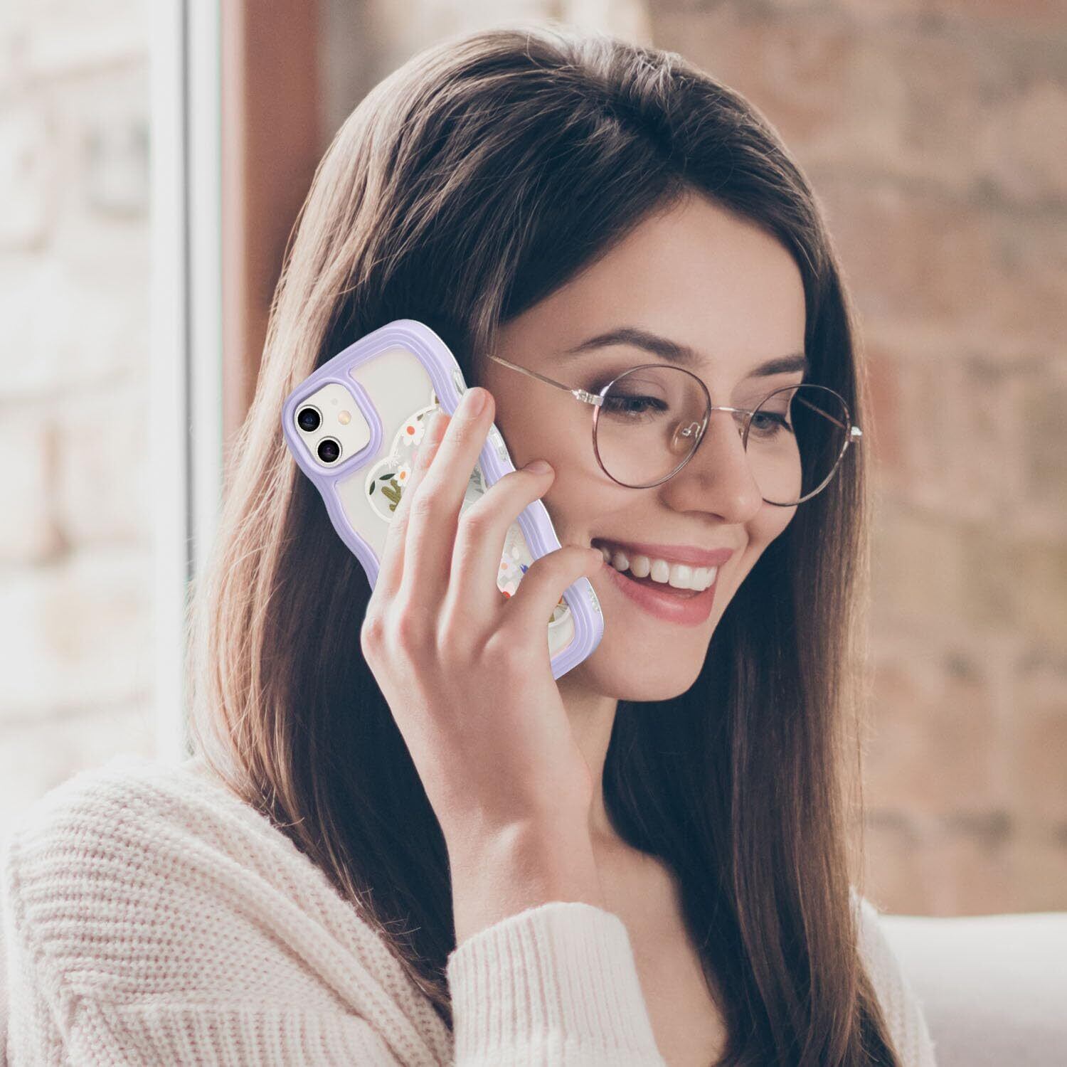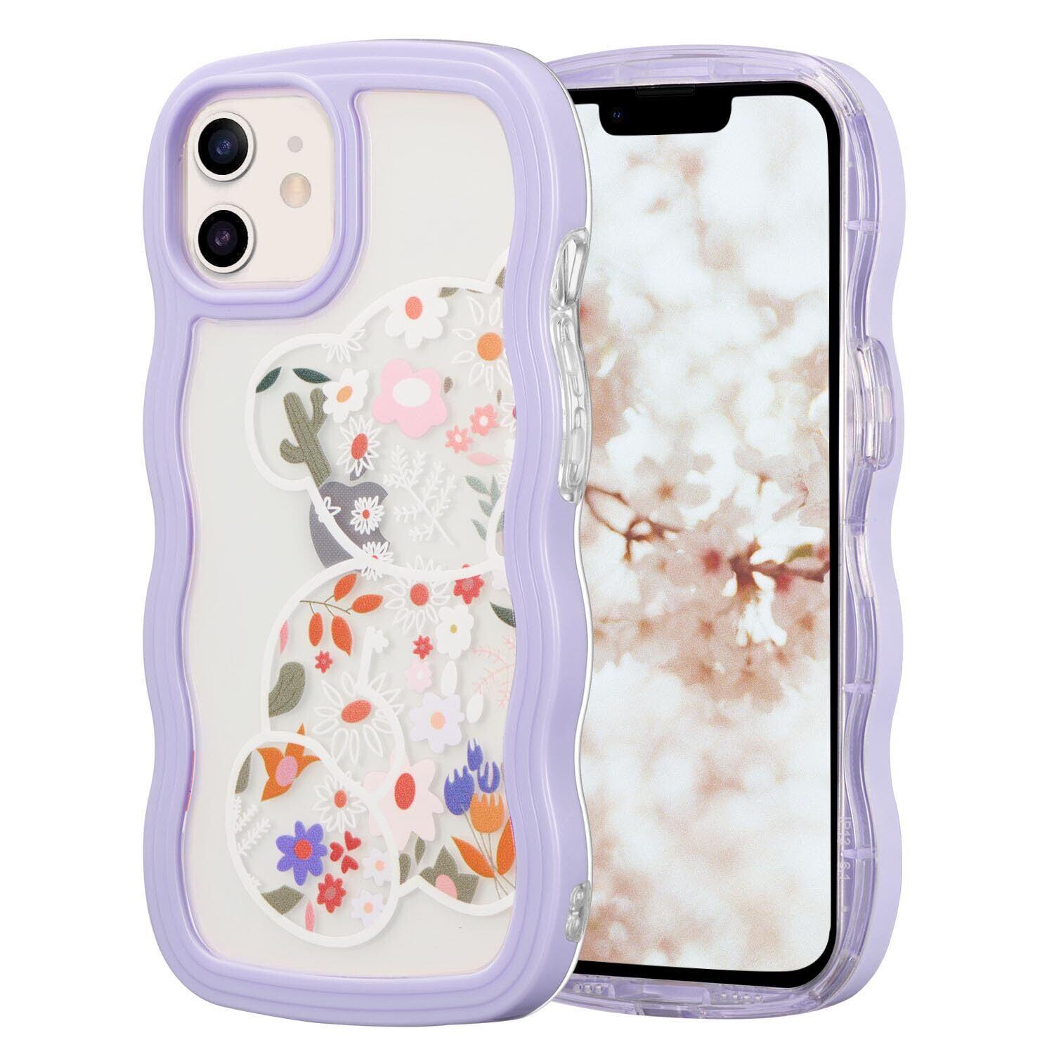 QLTYPRI iPhone 11ケース クリア TPUカバー おしゃれ 韓国 可愛い 透明 薄型 軽量 耐衝撃 スマホケース ワイヤレス充電対応 ストラップホール付き アイフォン 11 ケース 6.1インチ 対応 - パープルフレーム & クマ
