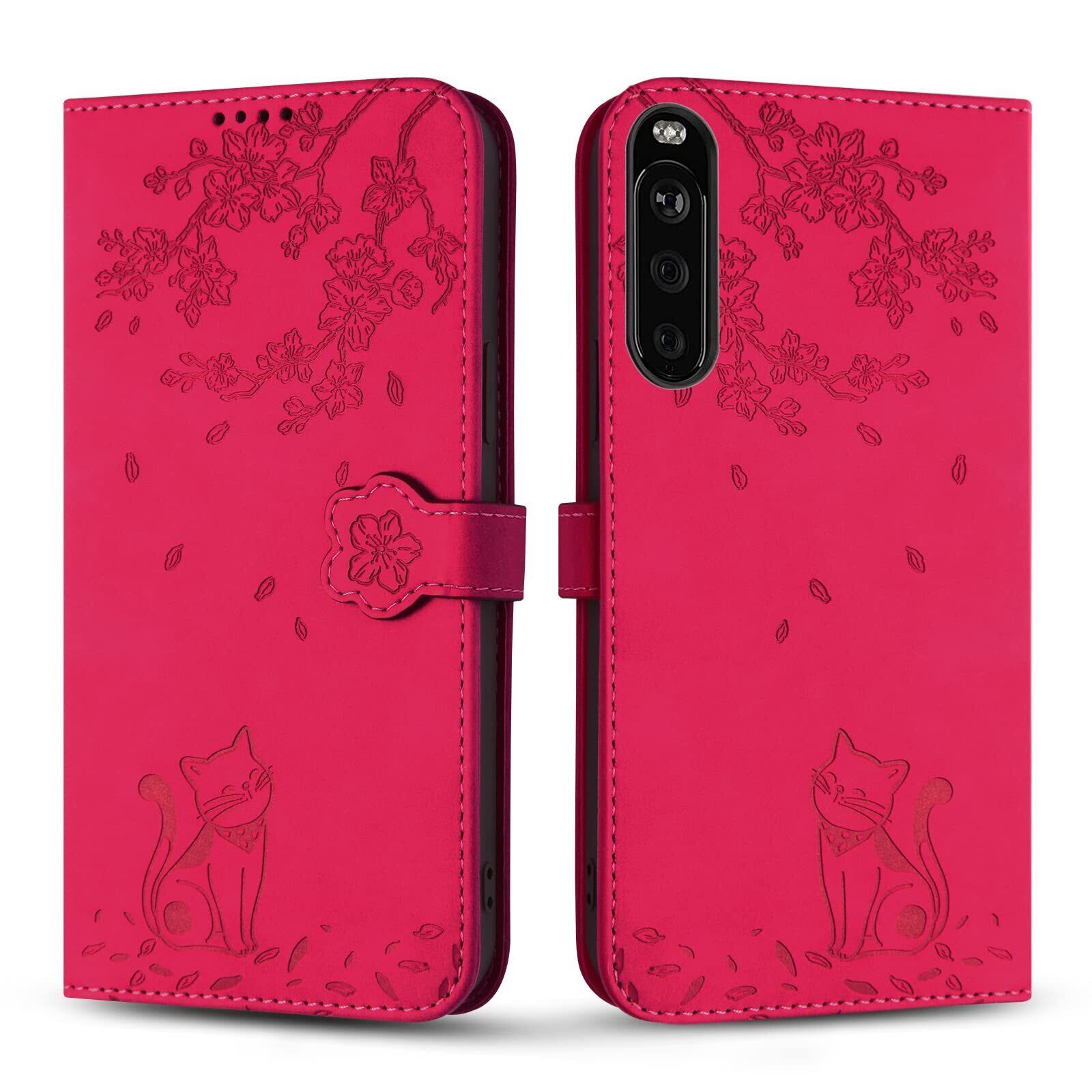 Xperia 10 Ⅱ ケース 手帳型 エクスペリア 10 ii ケース Rosbtib Xperia 10 Ⅱ SO-41A ケース プラムブロッサム ラブリー 子猫柄 SOV43 スマホケース 高級PUレザー カード収納 Sony Xperia 10 Ⅱ 携帯カバー マグネット式 スタンド機能 Xperia 10 Ⅱ SO-41A / SOV43 ケースカバー 財布型 (ローズレッド)