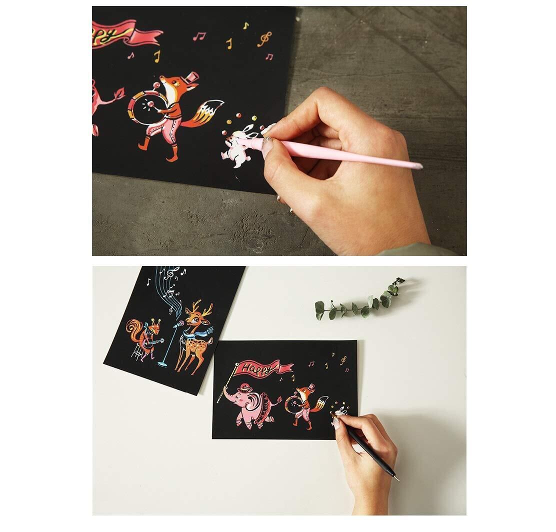 【プレミアム素材】:私たちのスクラッチ画像は黒のコーティングと色付きのハードボードで作られています。材料は環境に優しく、安全無毒です。