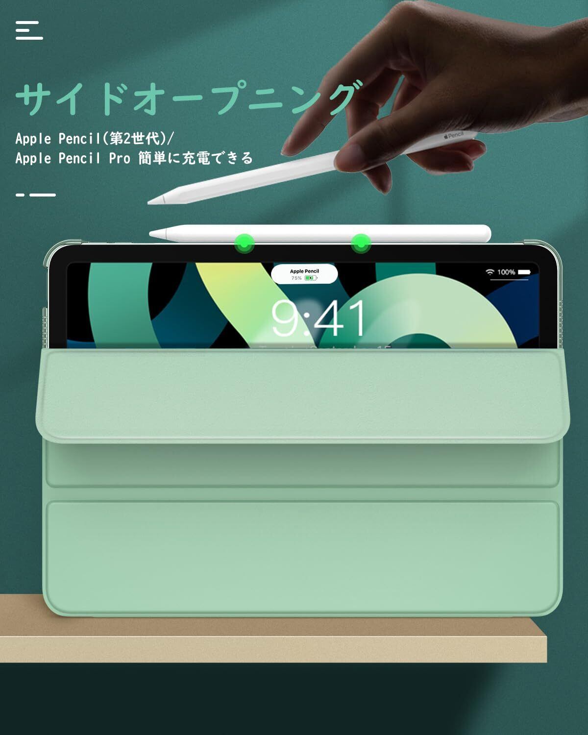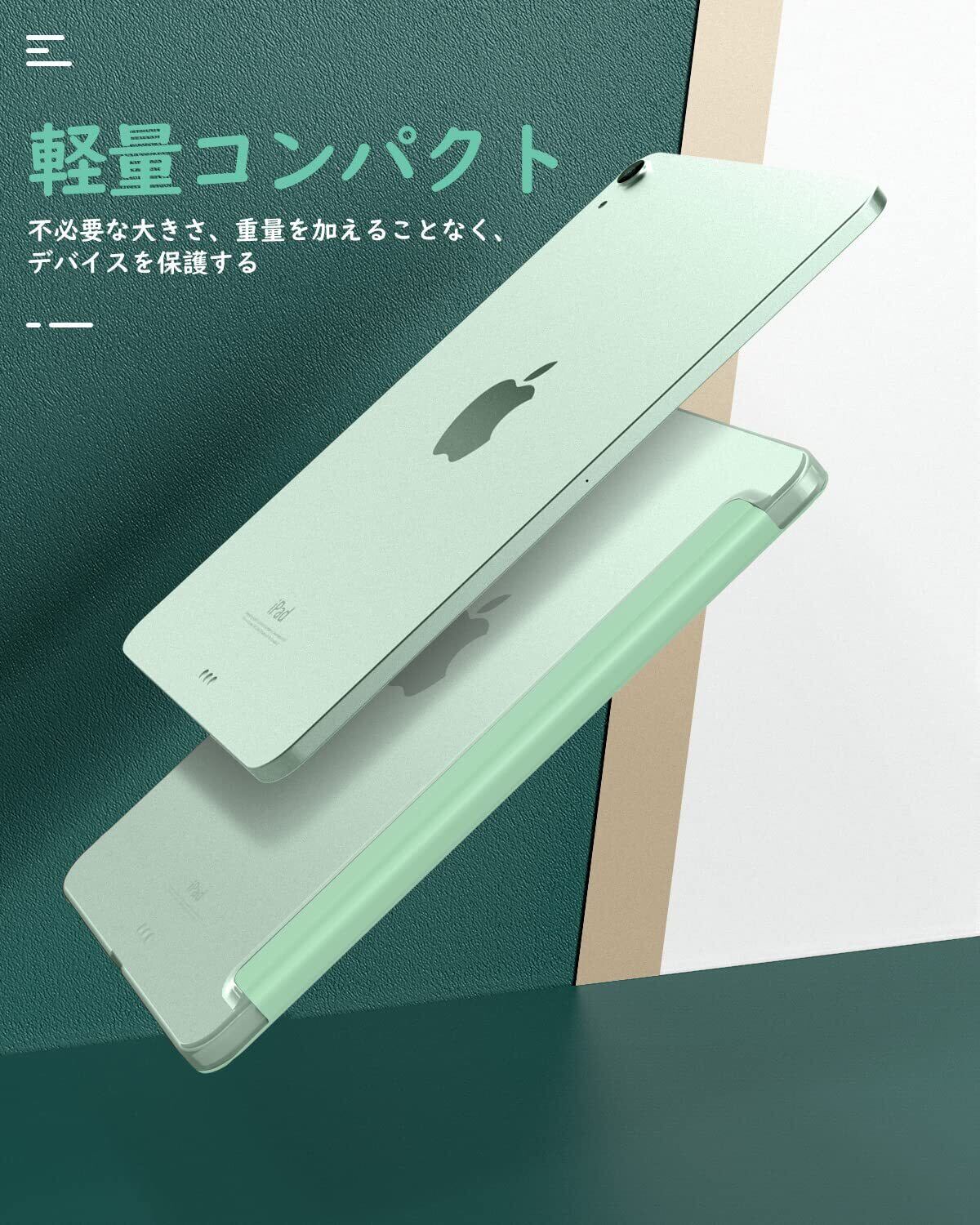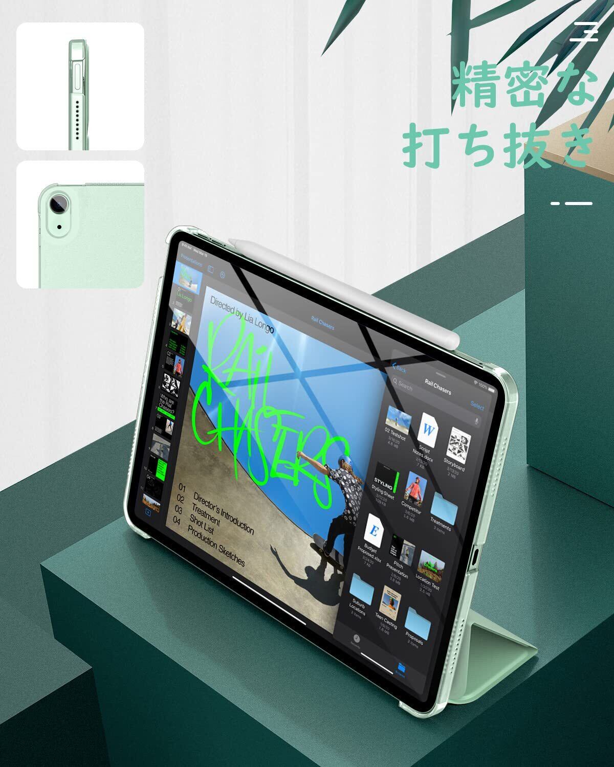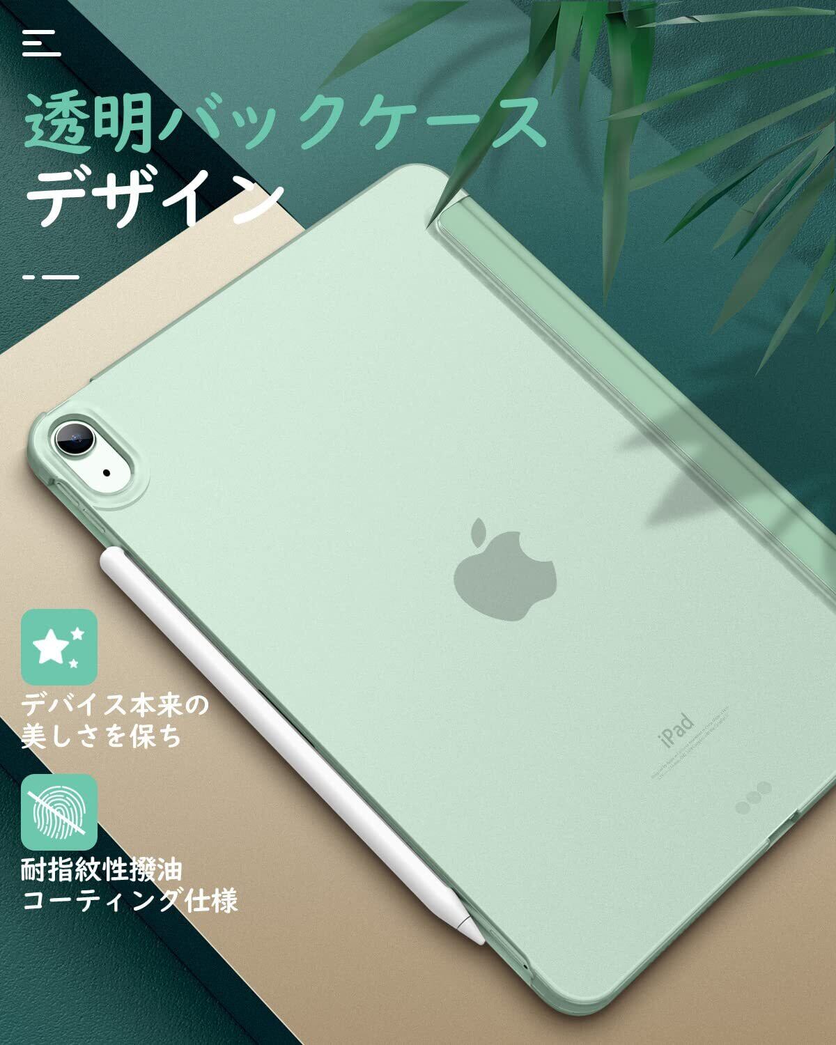 iPad Air 11インチ M3/M2 ケース 2025/2024 Dadanism iPad Air 11インチ/Air 5 Air 4 10.9インチ カバー Air 11 第7世代/第6世代 オートスリープ 三つ折り スタンドケース PU+PC 半透明 PencilPro/第2世代ワイヤレス充電 Green