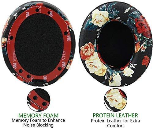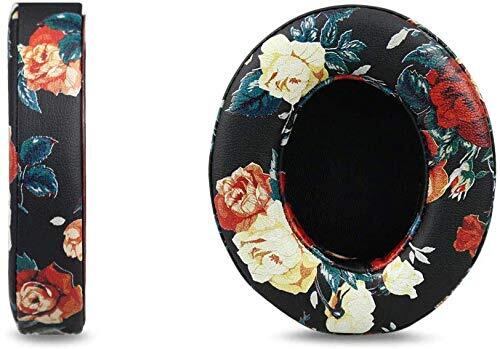 交換用イヤーパッドBeats Studio 2/3、プロテインレザー/メモリフォームイヤークッションパッド、Beats Studio 2.0ワイヤード/ワイヤレスB0500 / B0501およびStudio 3.0オーバーイヤーヘッドフォン用のイヤーカップをカバー(フローラルブラック)