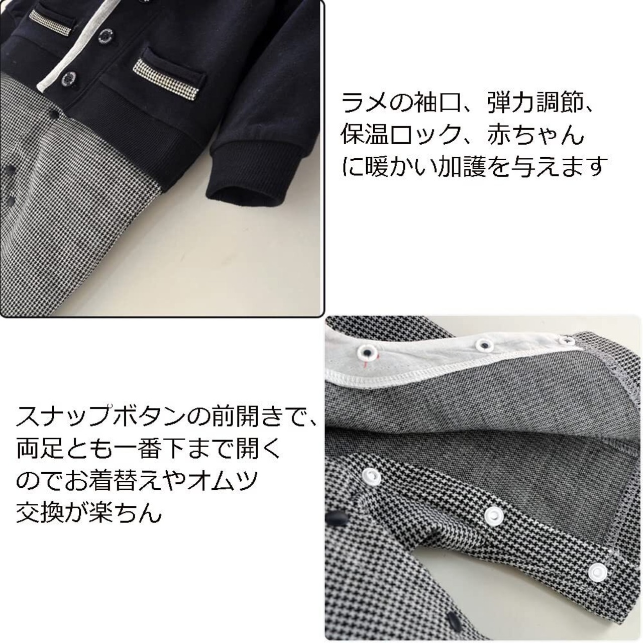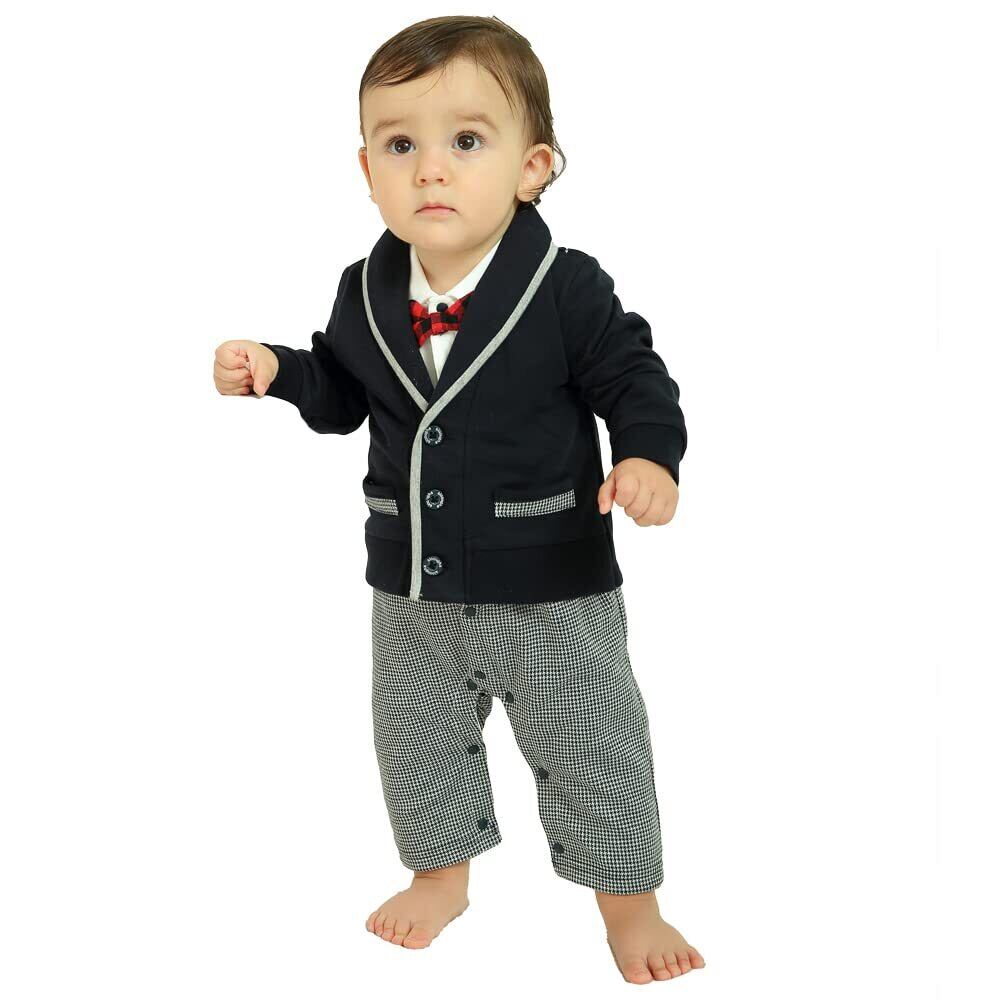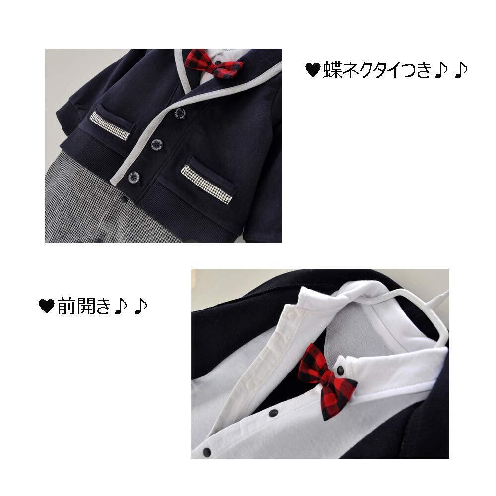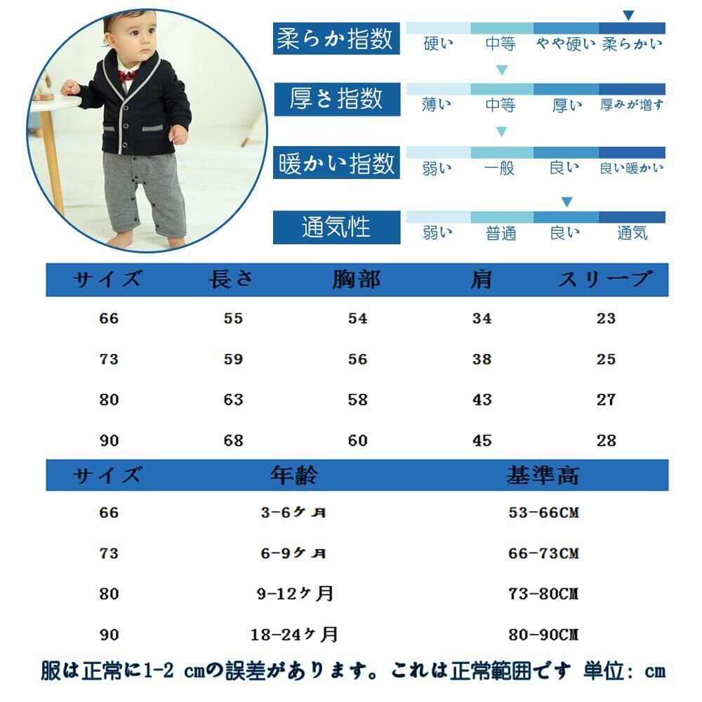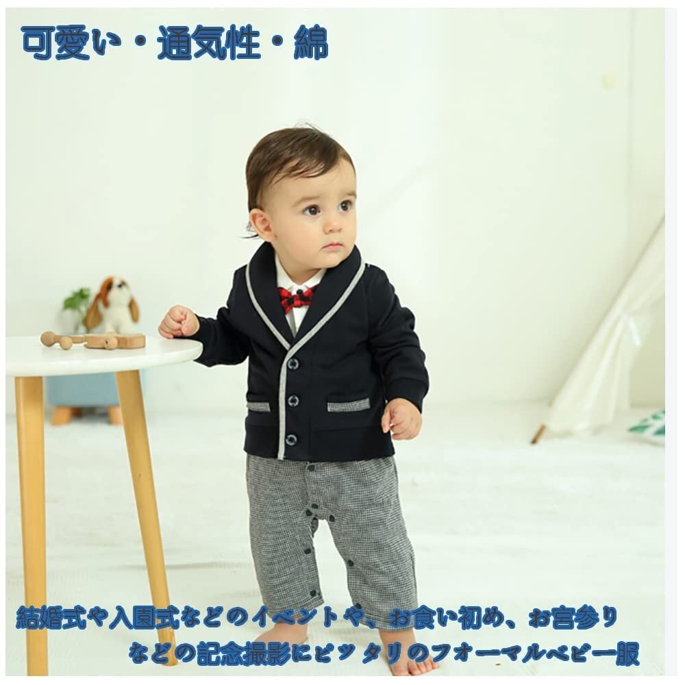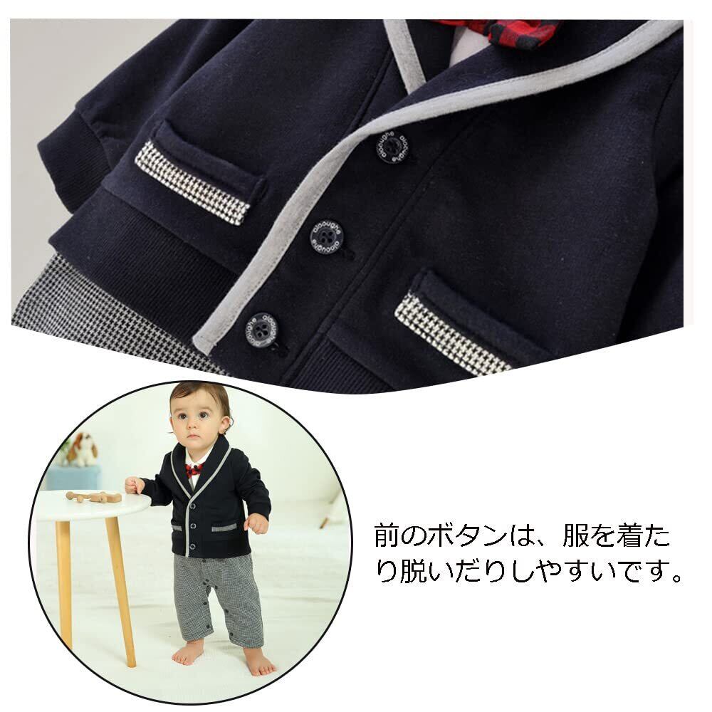 [Haoerwu] ベビー服 長袖 ロンパース 洋装フォーマル 厚手 春 秋 冬 セレモニー 結婚式服 前開き 男の子 綿 カバーオール ブラック 66 73 80 90