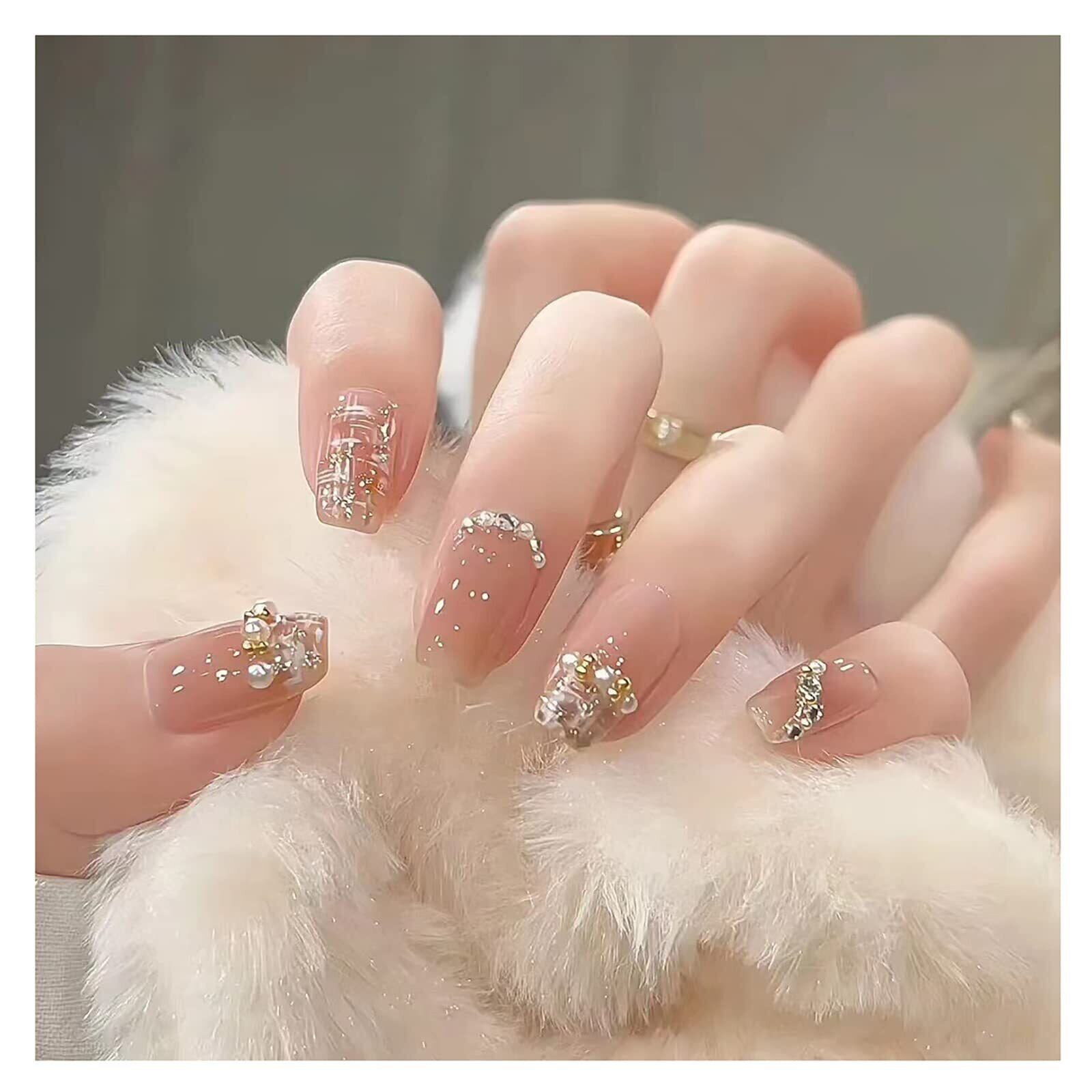 ドミ屋 ネイルチップ ショート 人気 ネイルシール つけ爪 かわいい 付け爪 3D爪 24枚入 ラウンドチップ ファッション ネイル 結婚式ネイルチップ 花嫁ネイル (MJ-339)