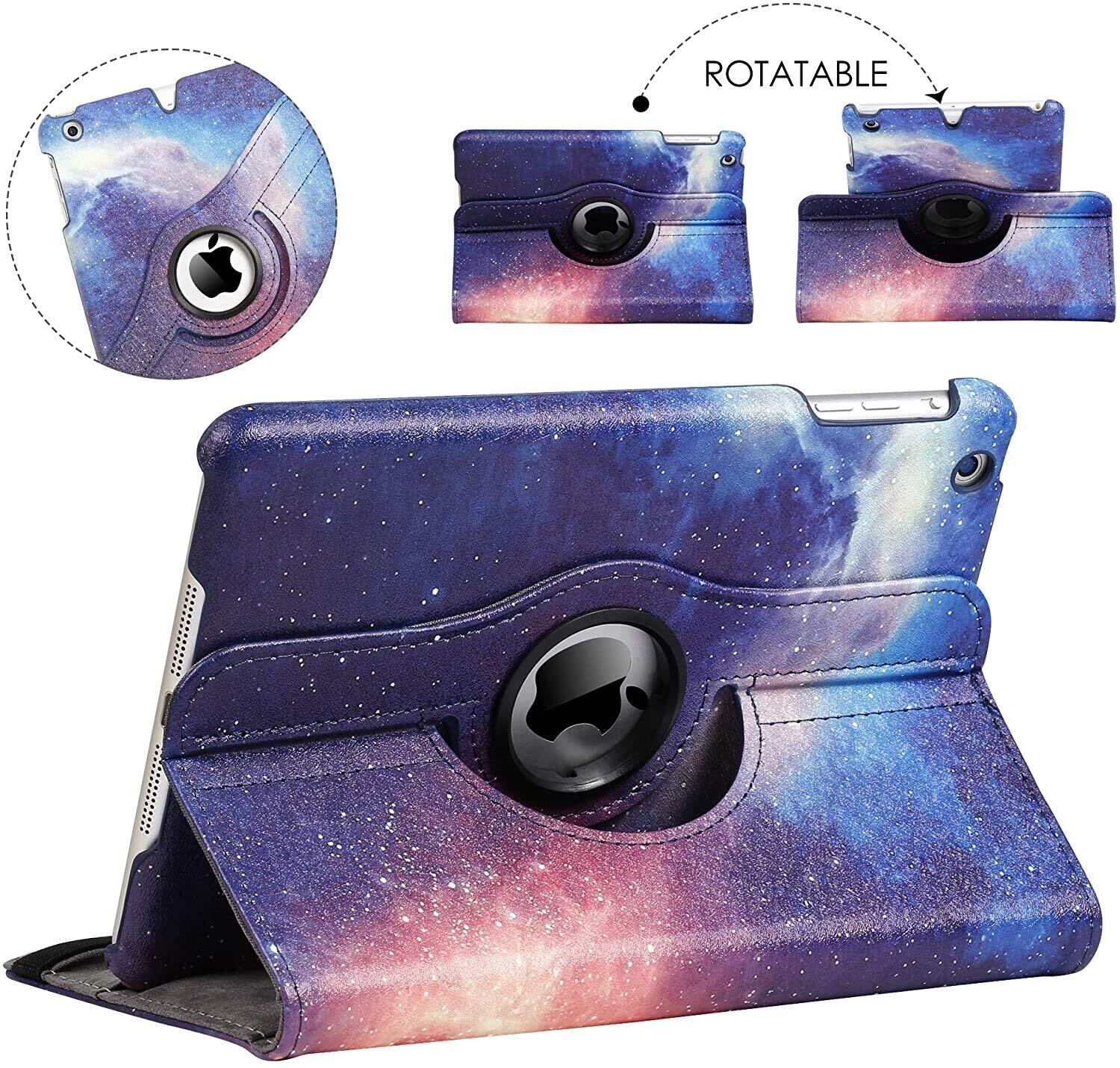 iPad mini 1ケース、iPad mini 2 ケース、iPad mini 3 ケース、 PUレザー、360度回転スタンド スマートカバーケース 自動スリープ/ウェイク機能付き Apple iPad Mini 1 / iPad Mini 2 / iPad Mini 3用 (星空の色)