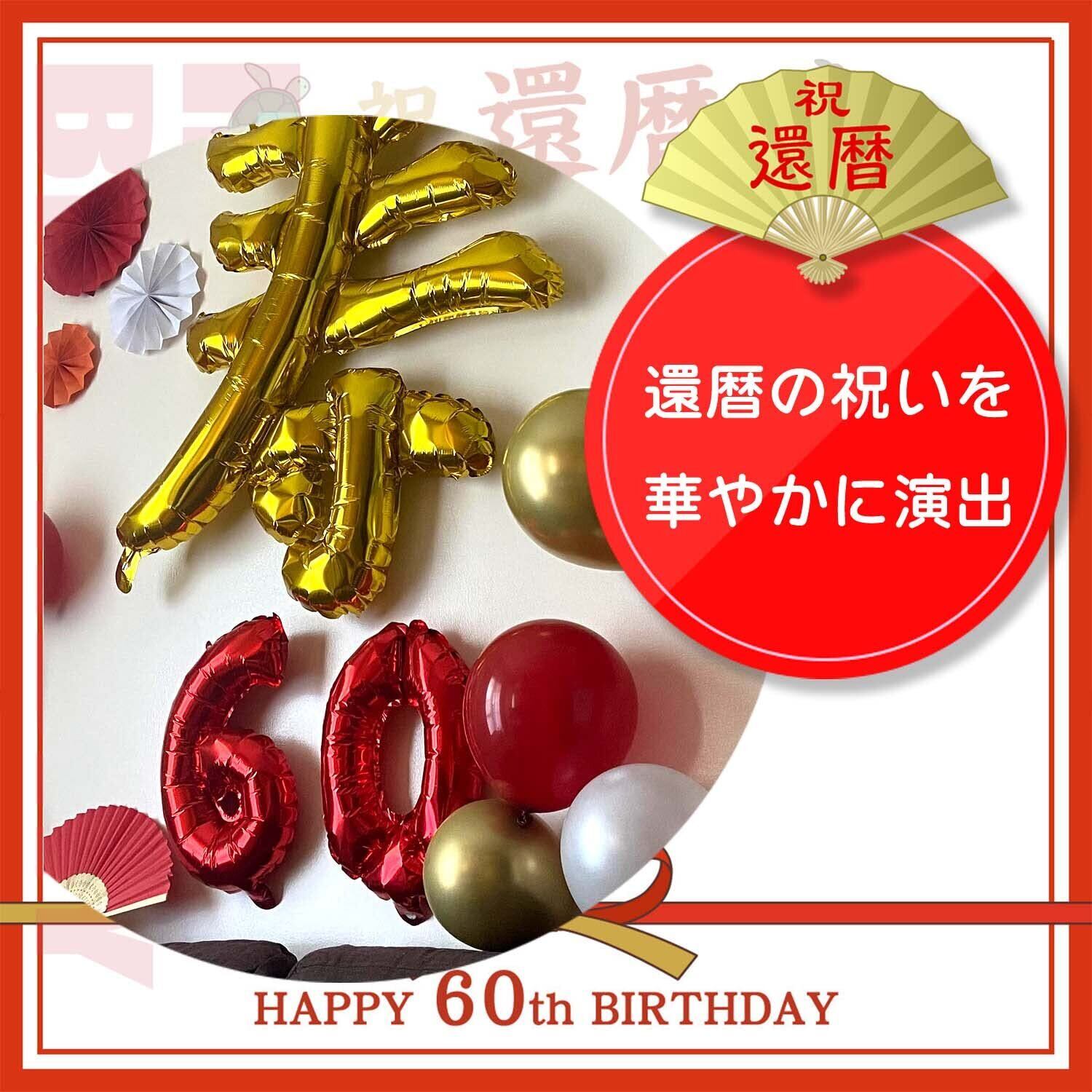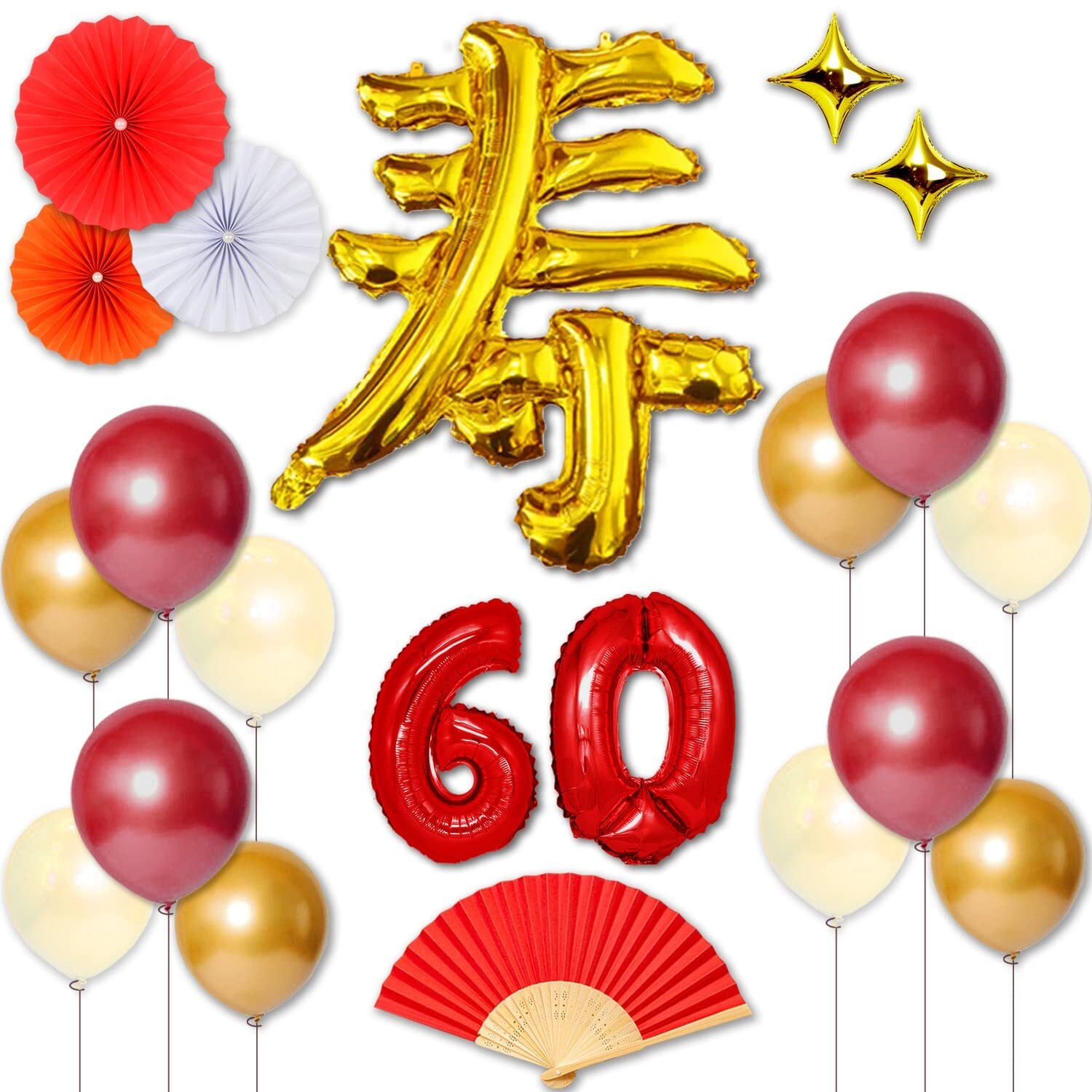 Ealimun 還暦祝い 60歳 飾り付け 寿 数字バルーン ペーパーファン 扇 風船 (60歳 還暦セット B)