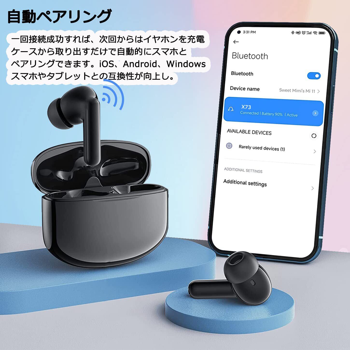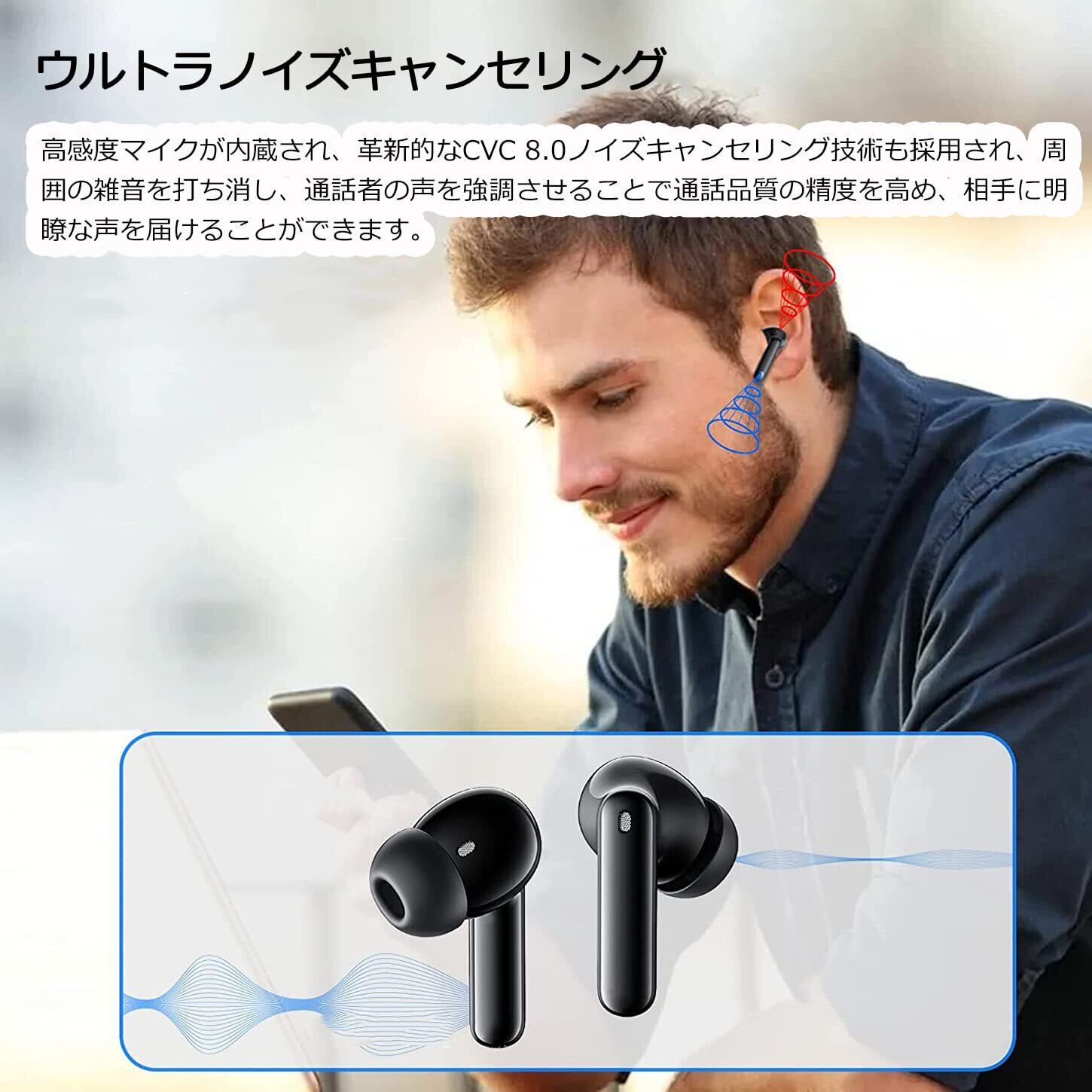 【最先端のBluetooth 5.3+EDR】このワイヤレス イヤホン最先端技術Bluetooth5.3チープを採用され、データ転送速度、接続の安定性が一躍で、旧世代Bluetooth5.0チップと比較すると省電力性や接続の安定性が格段に向上しました。CVC 8.0ノイズキャンセリング技術は雑音が削減でき、聞くことに集中することができます。10メートル以内で高質で音声中継が特徴です。音飛びや音切れが一切なし。iOS、Android、Windowsスマホやタブレットとの互換性が向上し。