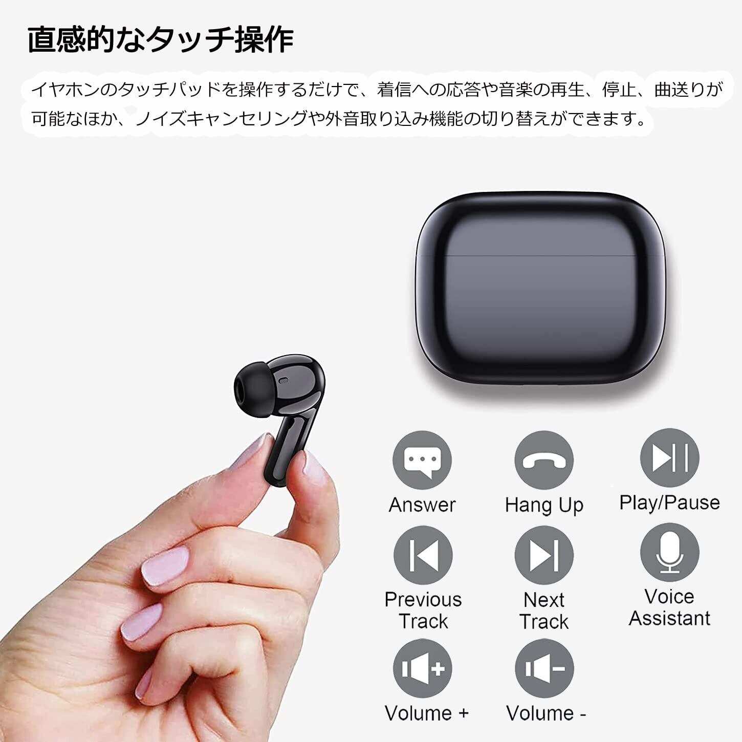 【簡単なタッチ操作】スマートタッチコントロールを採用した設計により、タッチ操作がストレスなく行え、簡単なタッチコントロールで応答/拒否、再生/一時停止、音量調整、曲送り/曲戻し、Siri対応などの基本操作を対応でき、操作はよりシンプルで快適な体験感を与えます。