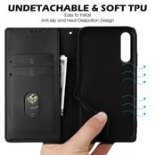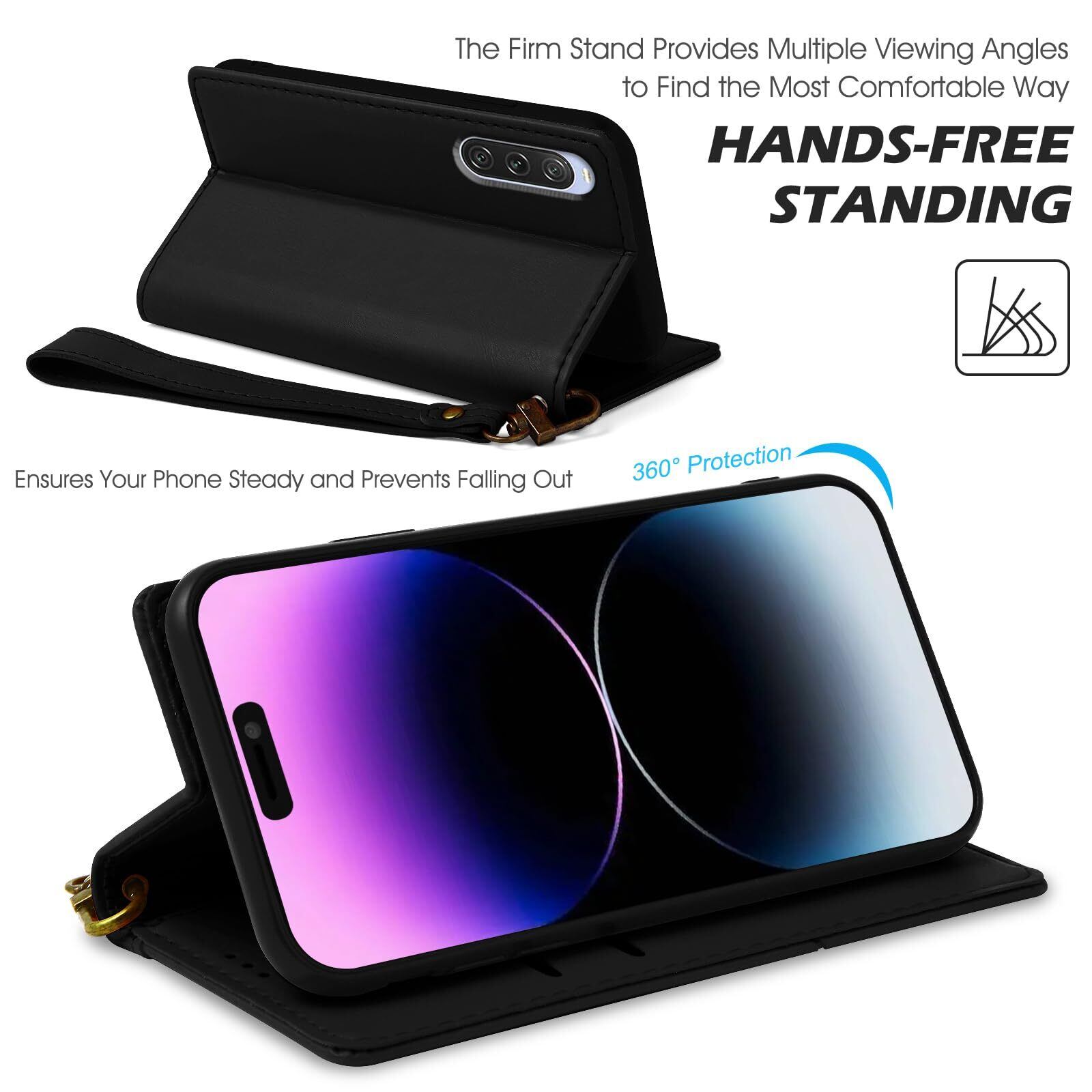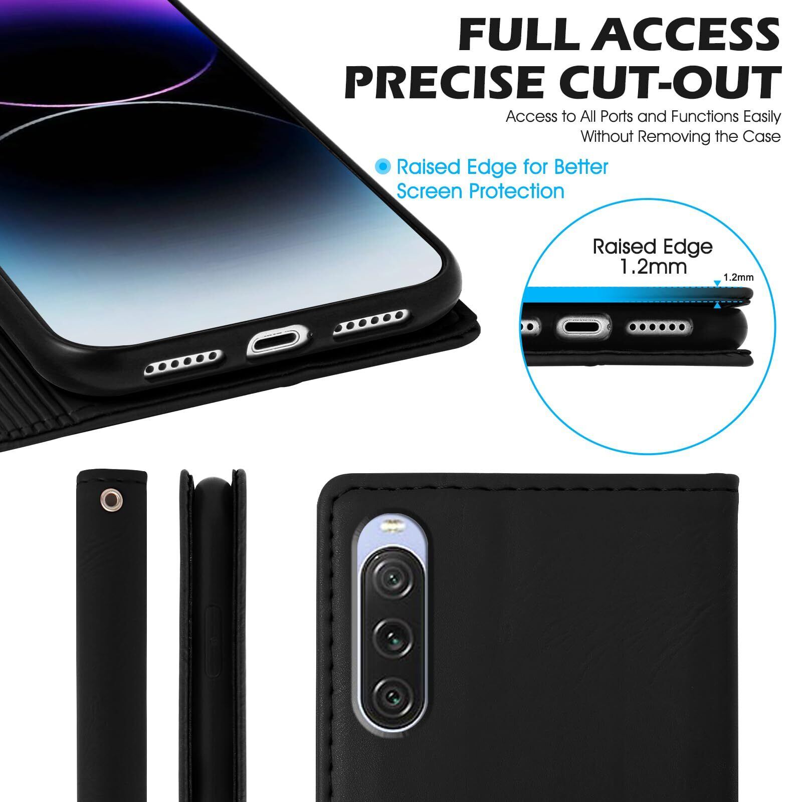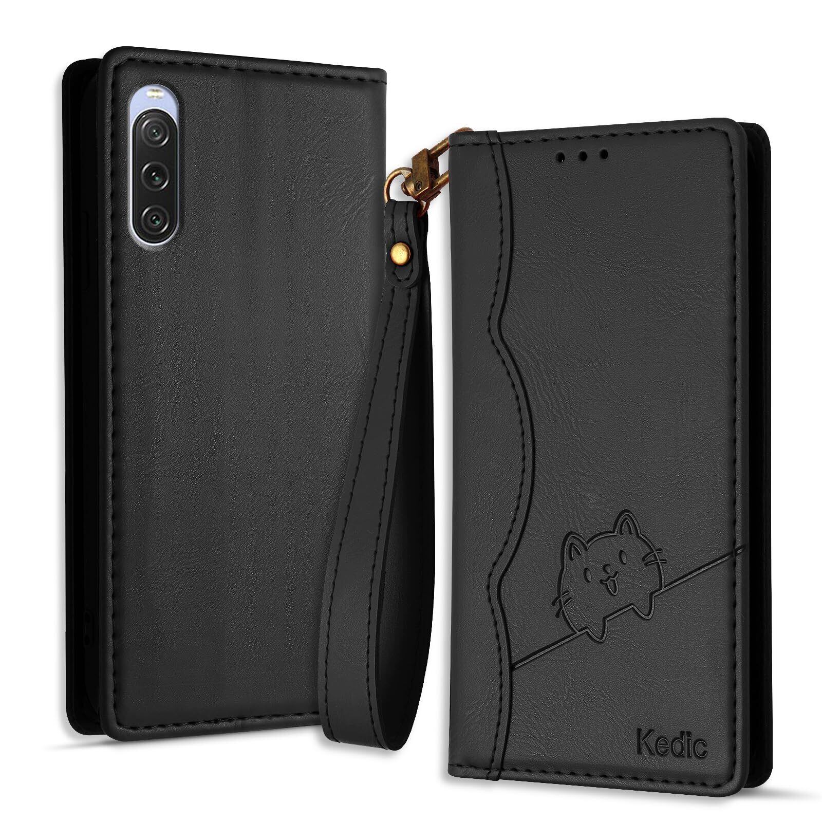 Kedic Xperia 10 V ケース 手帳型 可愛い笑顔の猫模様 手作り エクスペリア 10V ケース SO-52D SOG11 スマホケース Xperia 10V SOG11 携帯カバー おしゃれ カード入れ 財布型 と横方向のスタンドが 多機能 SO-52D カバー 内蔵マグネット式 純色シンプルデザイン エクスペリア 10 5世代 ケース 黒