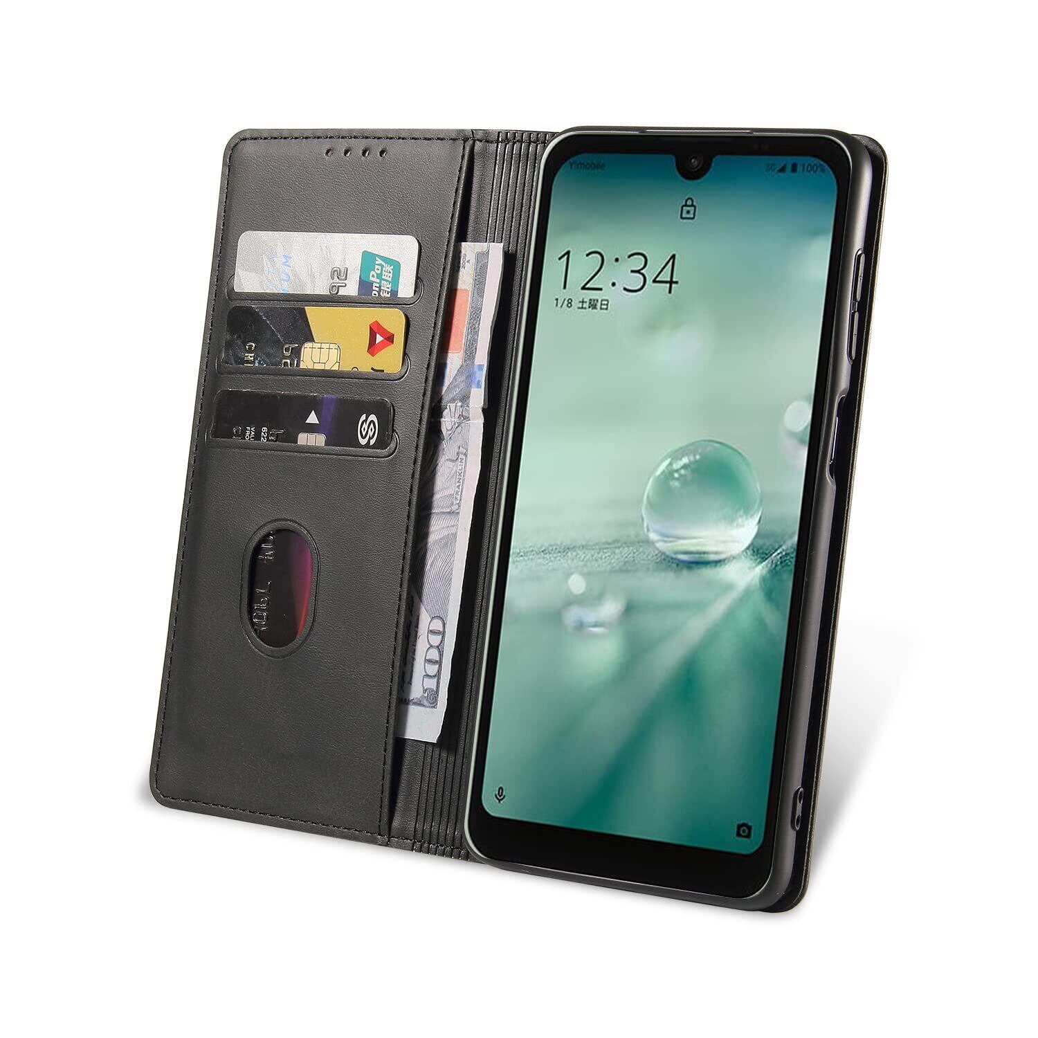 AQUOS wish / wish2 ケース SHG08 SHG06 au A104SH ケース スマホケース 手帳型 携帯カバー レザー 耐衝撃 軽量 着脱しやすい 放熱性 マグネット式 カード収納 スタンド機能 aquos wish 2 ケース 対応 360度保護 PinLiSheng (AQUOS wish / wish2, ブラック)