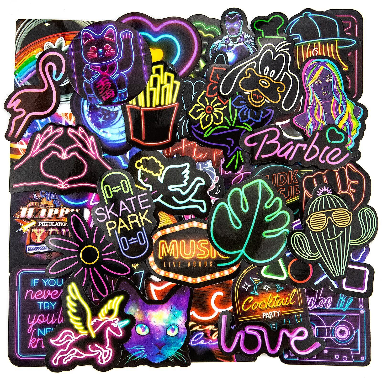Fantasyon 100枚 ステッカーセット ネオンライト模様 ステッカー 防水 PVC ステッカー スーツケース 車 自転車 バイク ヘルメット パソコン スノーボードに適用 (ネオン2)