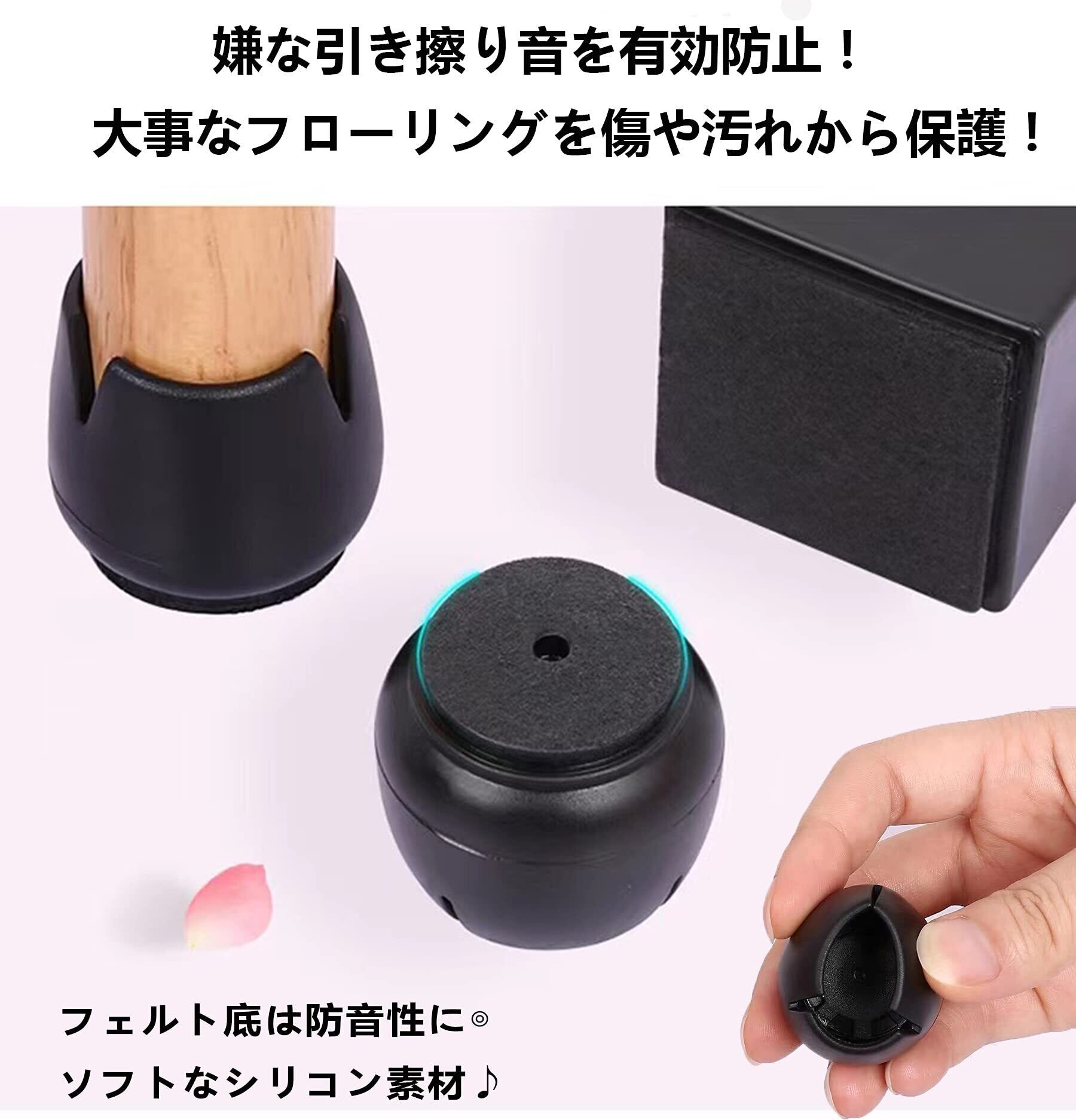 【騒音防止・防音対策・キズ防止】底部にはフェルト付きの椅子脚カバーキャップで、床を擦る音も抑えられるうえにフ ローリングや畳などを保護します。