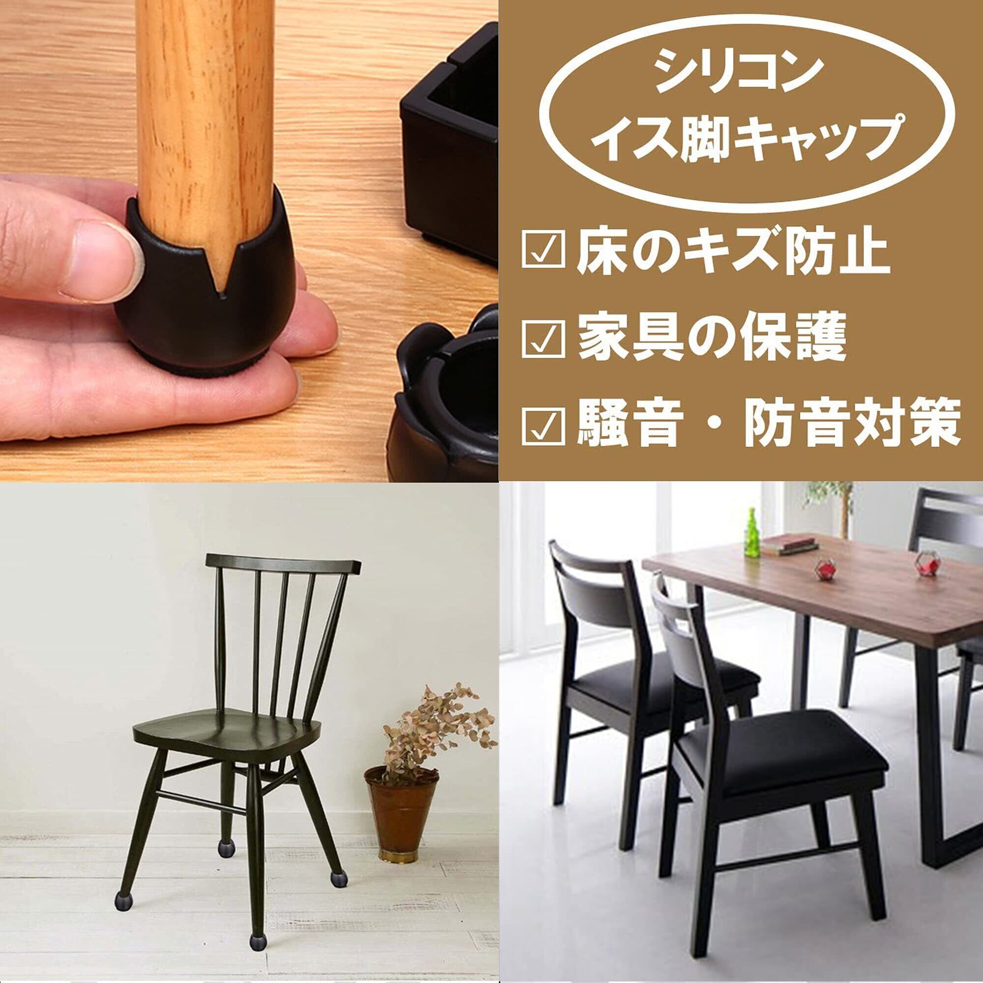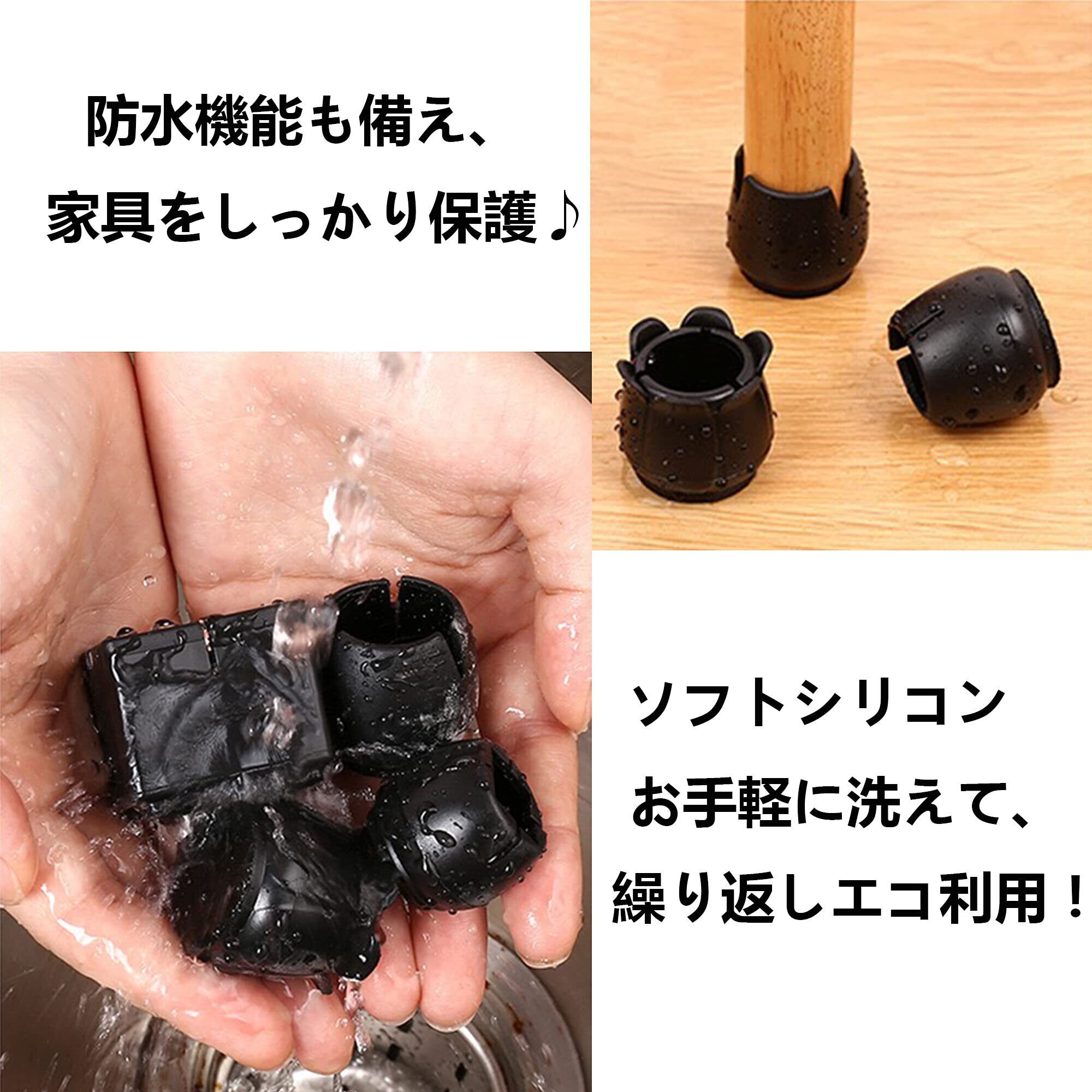 椅子脚カバー チュアーソックス 椅子あしキャップ シリコン 黒 騒音 きず防止 滑り止め レフィル付き 丸脚 16個セット ブラック(直径17-21mm対応)