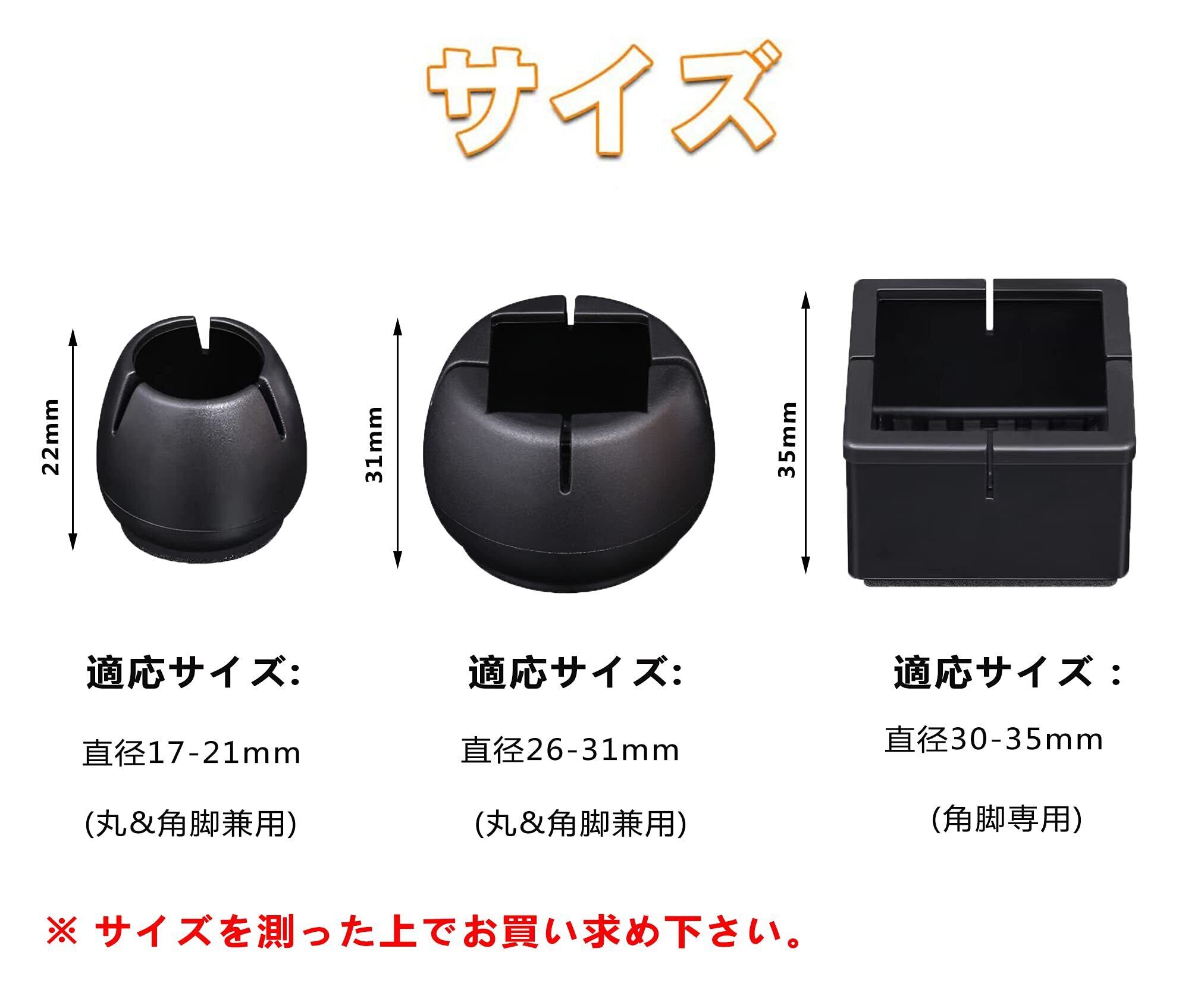 【サイズ&セット内容】直径17-21mm対応、丸脚専用。色:ブラック 内容:16個セット