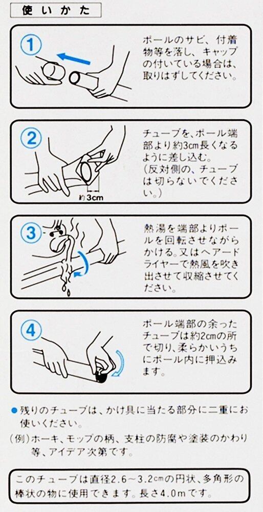 より清潔に竿にかぶせお湯をかけるとピッタリカバー可能! ○物干し竿の修理、腐食の防止、塗装の代わりとして。○ホーキ、モップ等の支柱の防腐や塗装代わりにも○使用できる竿:径約2.6~3.2cm×長さ4mまで。※円形、多角形の棒状のものに使用できます。