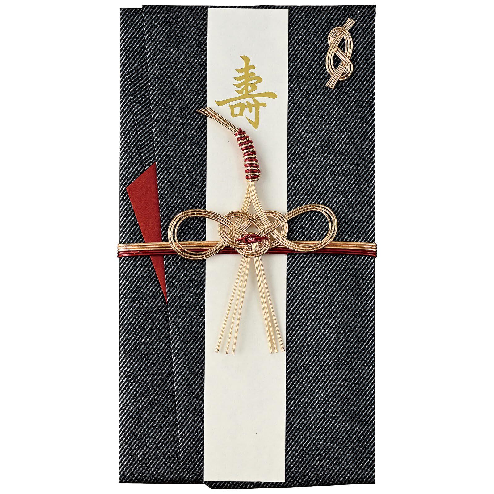 金封本体サイズ:100×185mm。「寿」、「御結婚御祝」、無地の短冊3枚入。赤線入中袋付。1枚入。