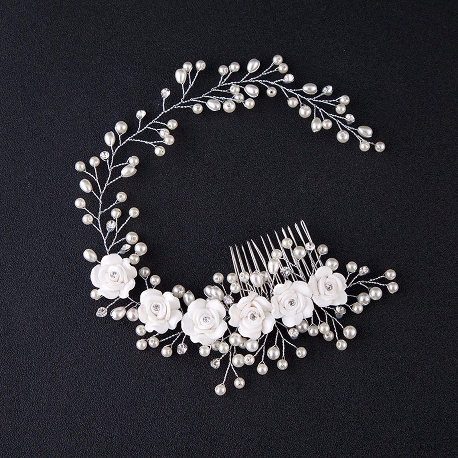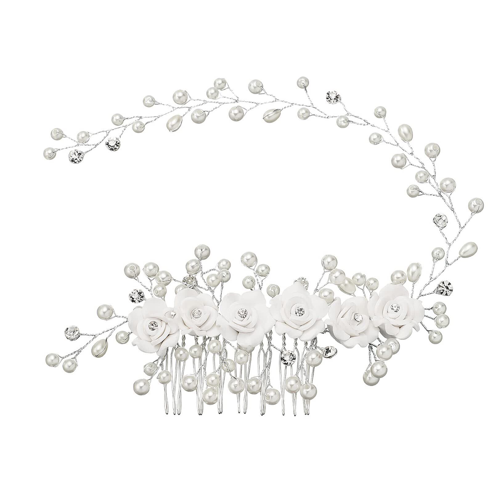サムコス 髪飾り 花 ヘアクリップ 小花モチーフ カチューシャ 髪飾りリーフ パール ジュエリー おしゃれ 子供 入学式 卒業式 発表会 結婚式 写真撮影 (ホワイト, 34)